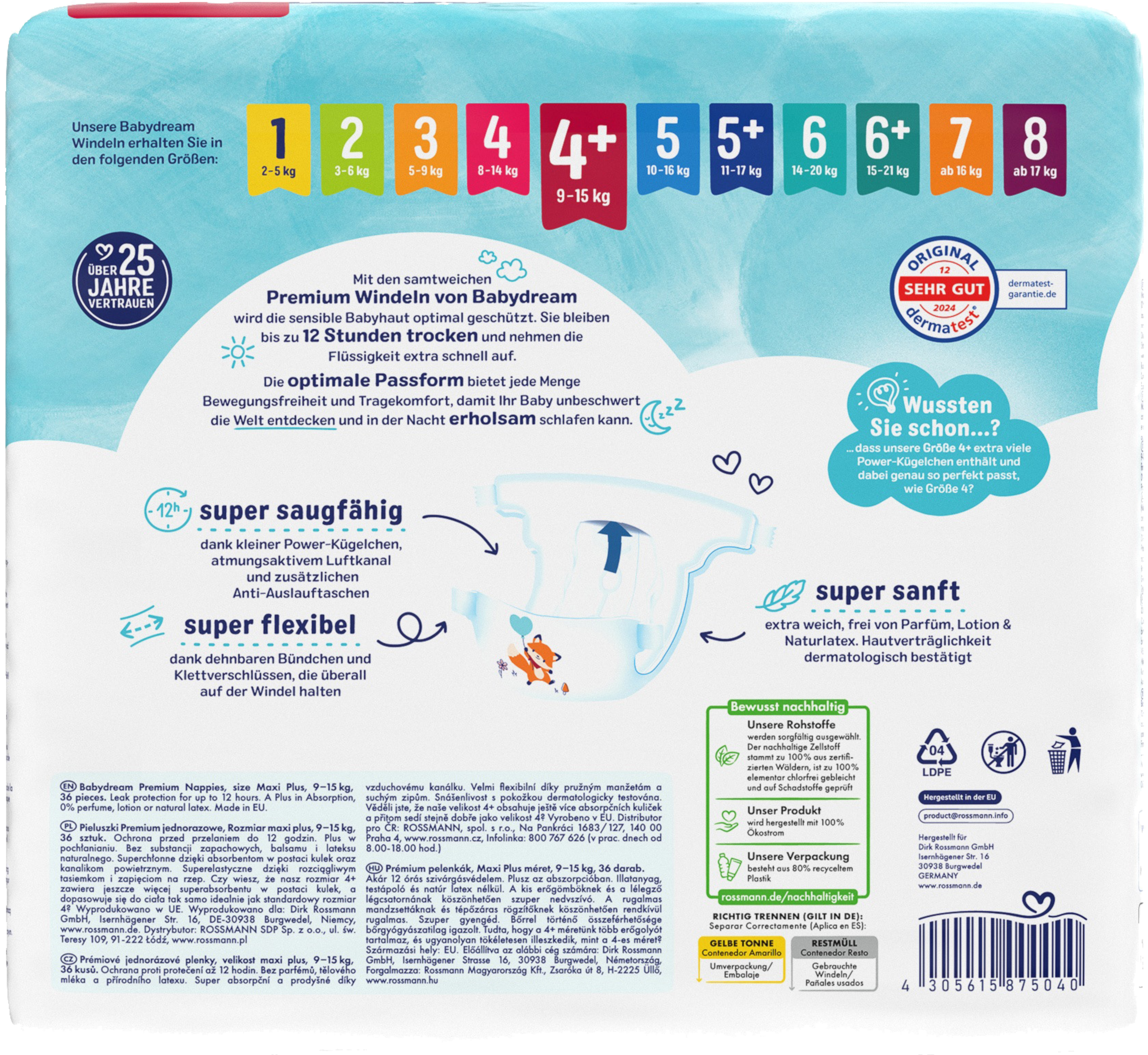Med de fløjlsbløde premium Bleer fra Babydream er Babyhud følsomme hud optimalt beskyttet. De holder sig tørre i op til 12 timer og absorberer væske ekstra hurtigt. Den optimale pasform giver masser af bevægelsesfrihed og komfort, så din Baby kan opdage verden ubekymret og sove roligt om natten.