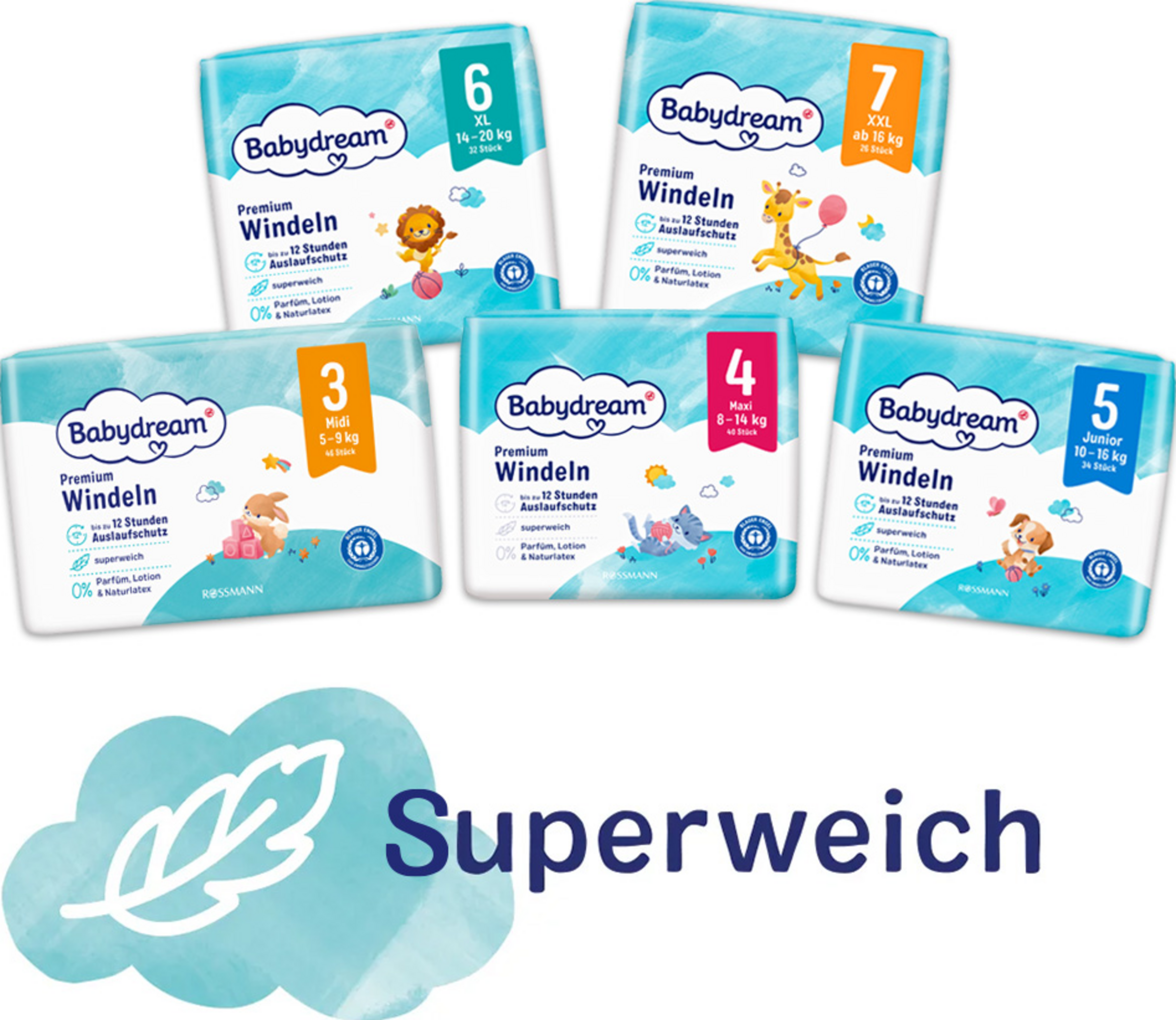 De fløjlsbløde premiumbleer fra Babydream giver optimal beskyttelse af din babys følsomme hud. De holder sig tørre i op til 12 timer og absorberer væske ekstra hurtigt. Den praktiske vådhedsindikator giver en vejledning i starten, da den bliver blå, når bleen skal skiftes.