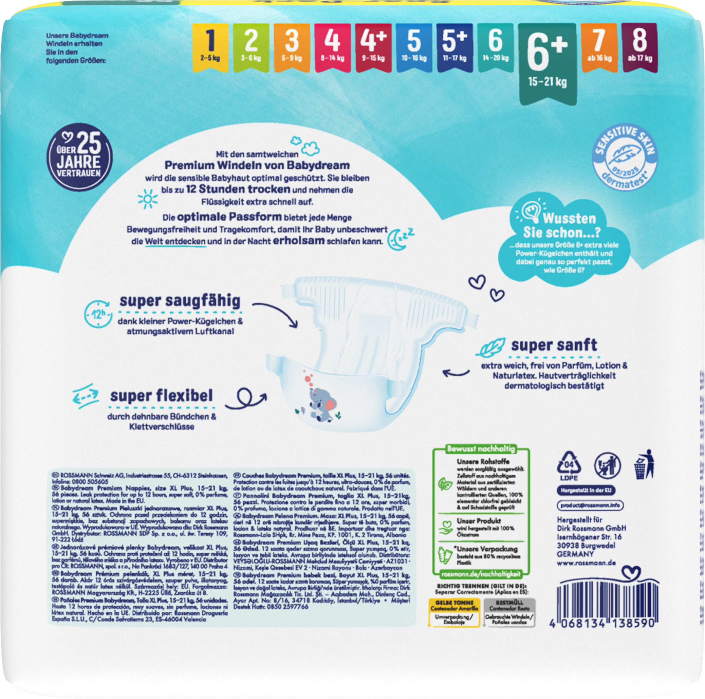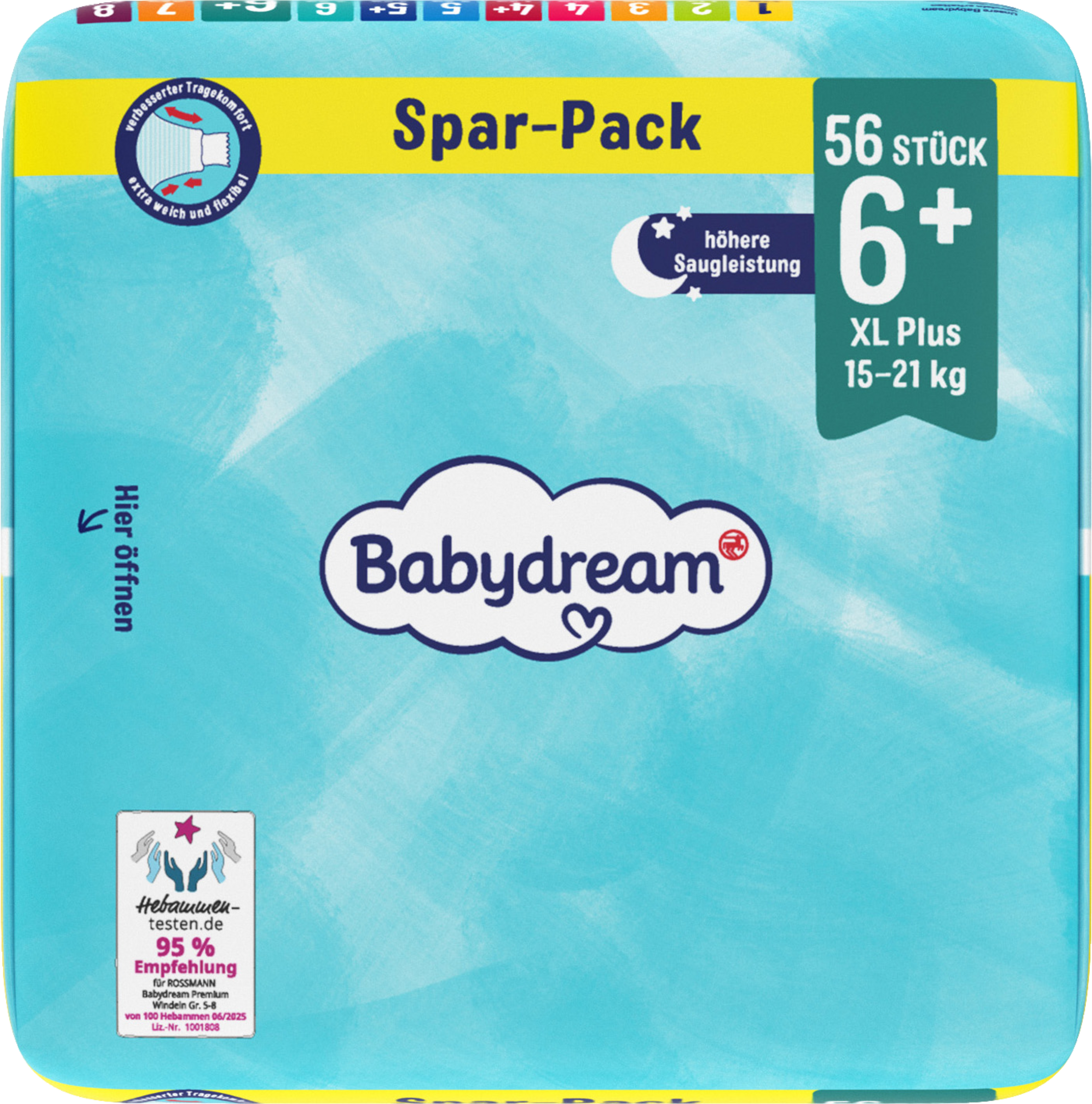 De fløjlsbløde premiumbleer fra Babydream giver optimal beskyttelse af din babys følsomme hud. De holder sig tørre i op til 12 timer og absorberer væske ekstra hurtigt. Den perfekte pasform giver masser af bevægelsesfrihed og komfort, så din baby kan udforske verden ubekymret og sove trygt om natten.