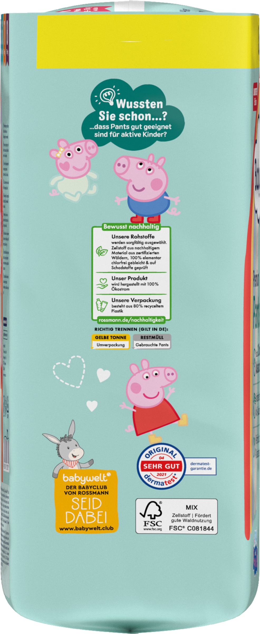 Til hende kan du bare tage PANTS på dit barn som et par trusser - eller de små kan bare prøve det selv. Du kan fjerne disse PANTS ved at rive dem op hurtigt og nemt ved sidesømmene. Du kan derefter rulle dem sammen, forsegle dem med den praktiske tape og bortskaffe dem.