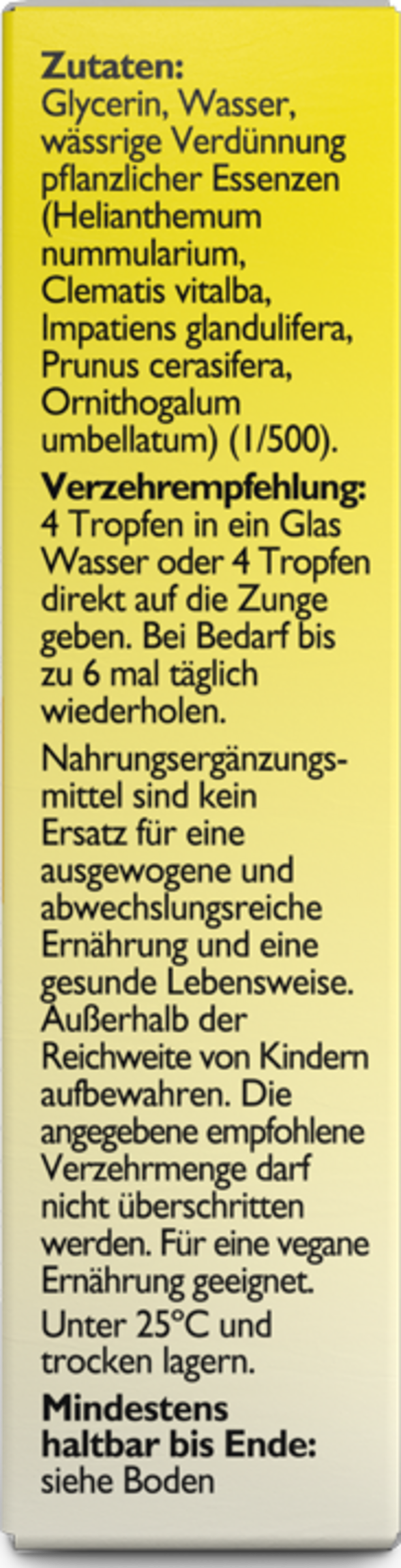 Kosttilskud med Bach® blomsteressenserne balsam, mælkebøtte, kirsebærblomme, gul solsikke, hvid klematis og hvid kastanje.