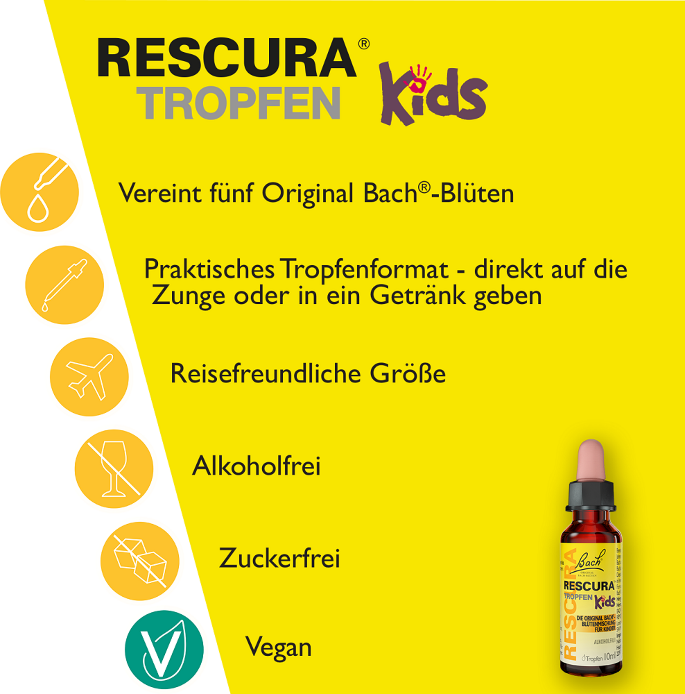 Alkoholfri. Naturligt og uden bivirkninger. Ingen kemiske tilsætningsstoffer. Nem at bruge. Laktosefri. vegansk Børnevenlig pipette lavet af plast.