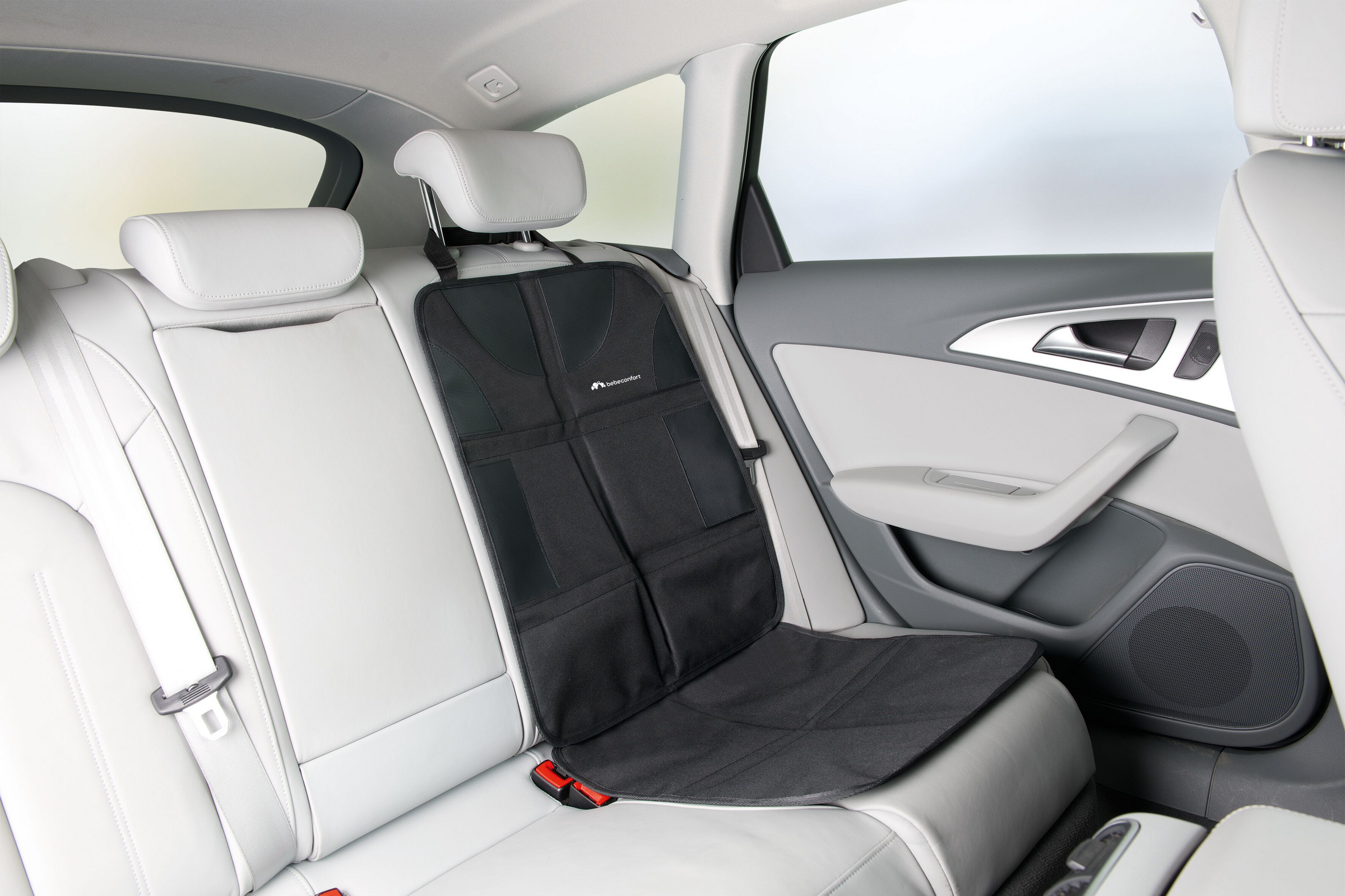 Bebeconfort bagsædebeskytteren beskytter sædet mod skader og pletter. Dette tilbehør installeres hurtigt og er nemt at rengøre. Takket være dens 6 skridsikre puder forbliver den på plads, hvilket gør den til det perfekte valg til at beskytte dine bilsæder.