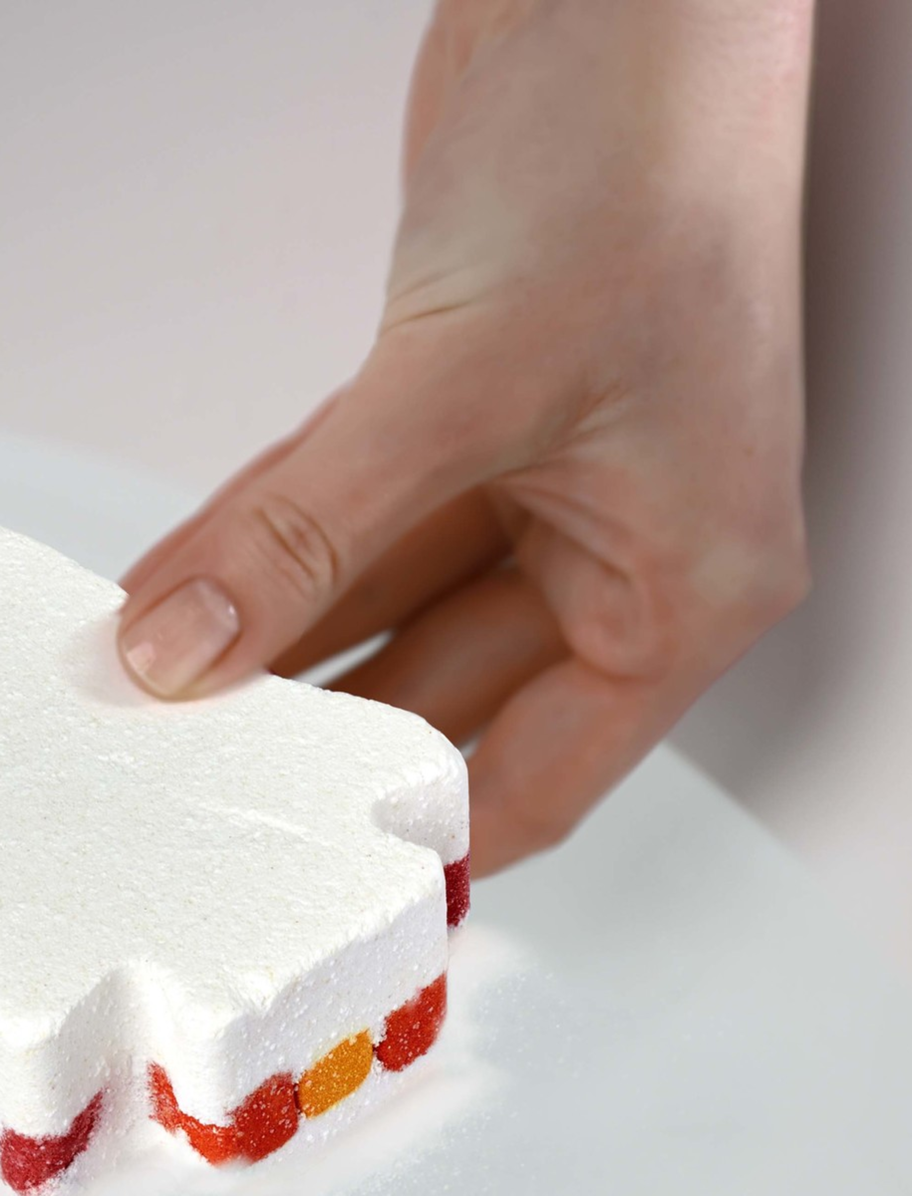 Det er sjovt at Bad - farveskuet varer i flere minutter og glæder både drenge og piger. Badebomben farver vandet og sørger for farverig badehygge.