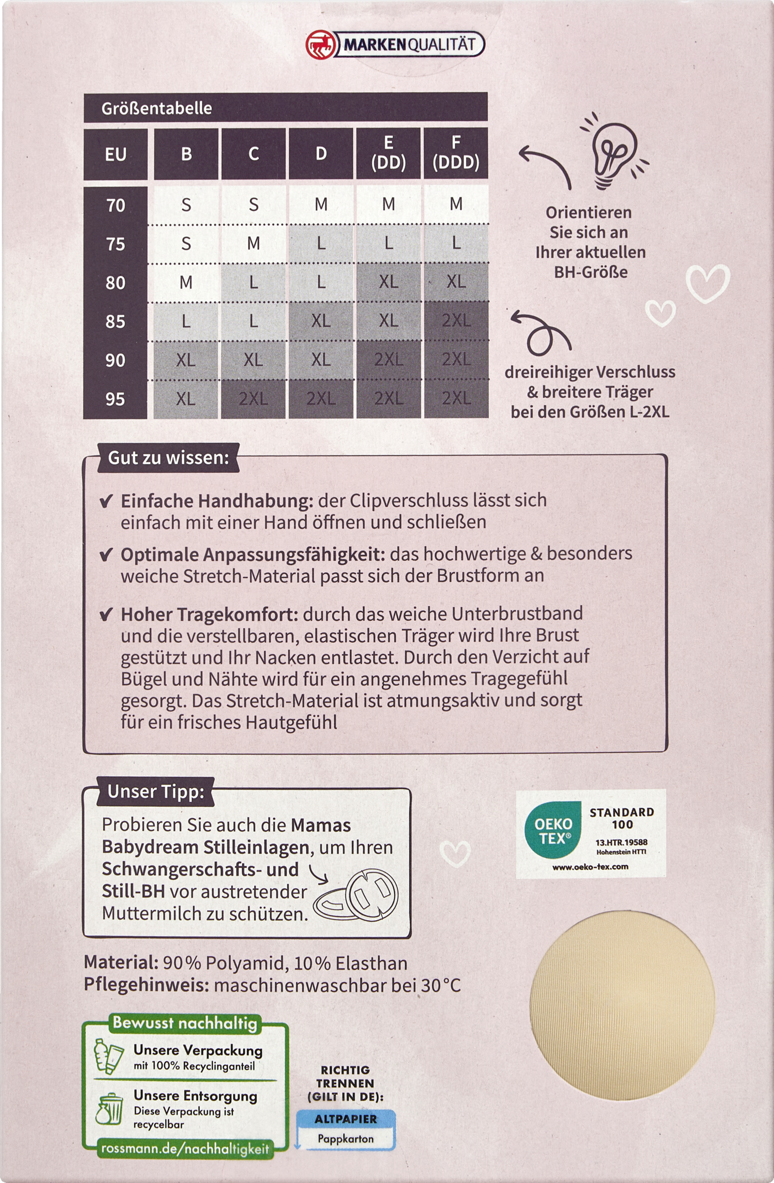 - Det højkvalitets og særligt bløde stretchmateriale tilpasser sig brystets form og