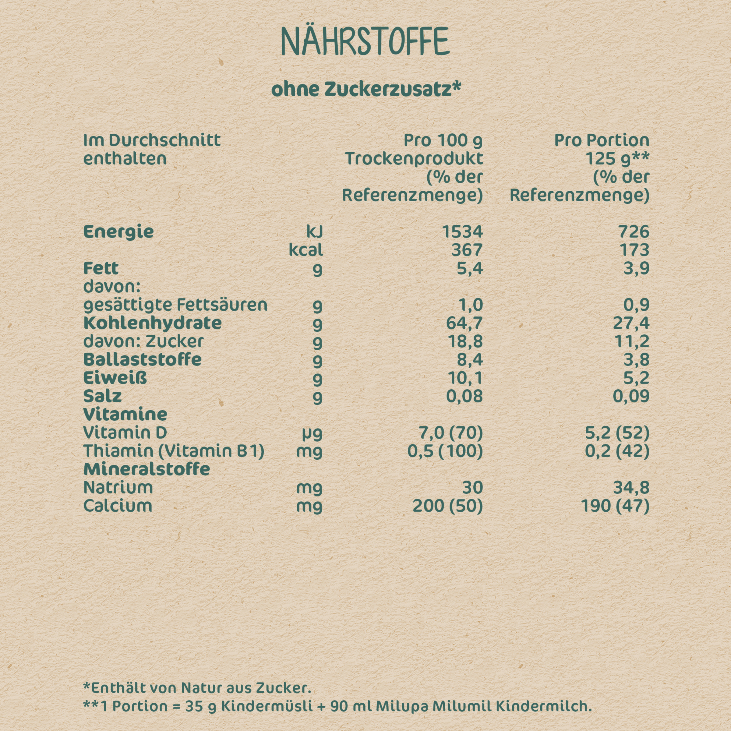 | Pro Portion (35g Müsli + 90ml Milupa milumil Kindemilch) | ||
