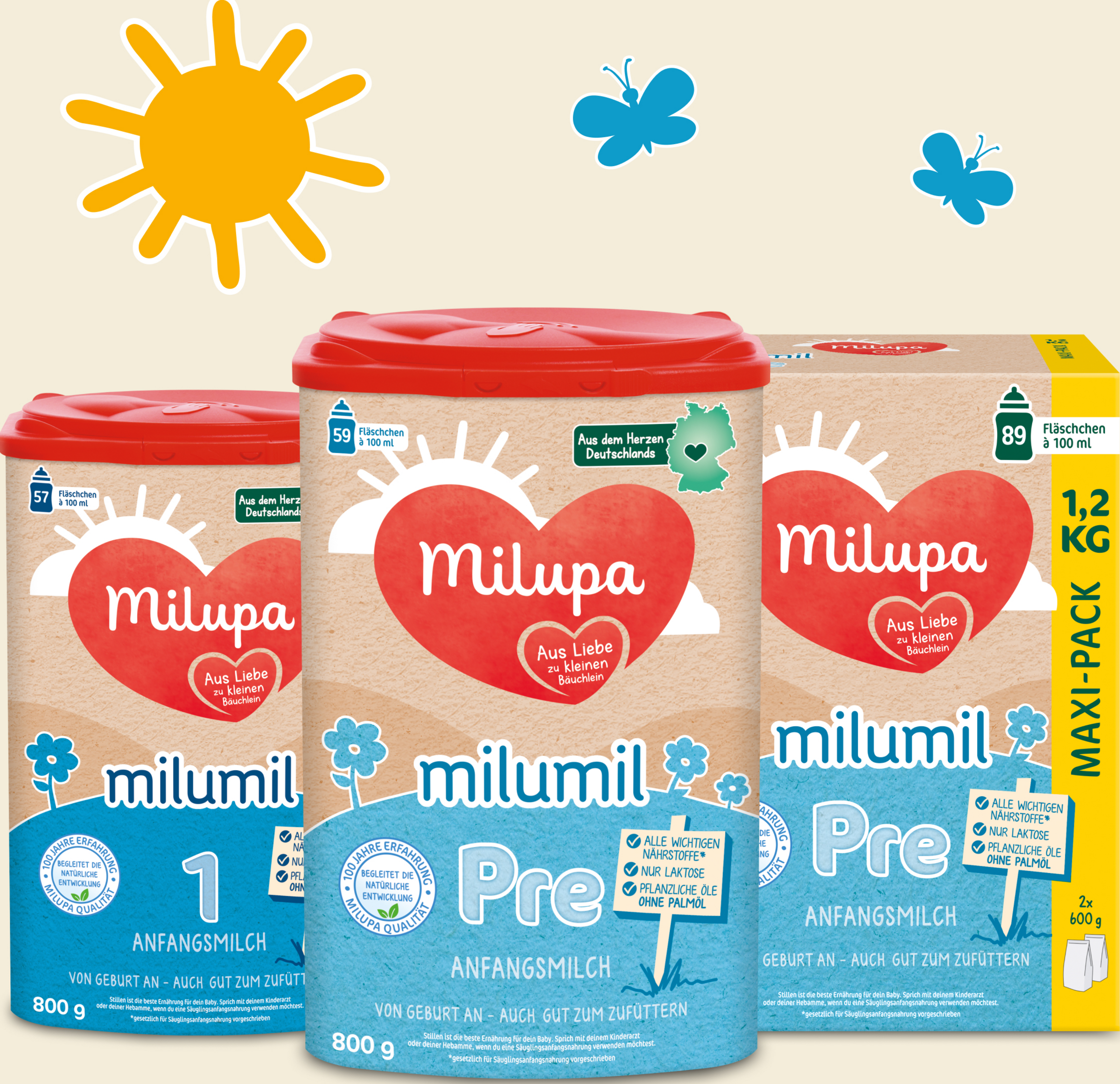 Milumil Pre indeholder DHA, kun laktose, og dens Sammensætning er skræddersyet til babyer fra fødslen.