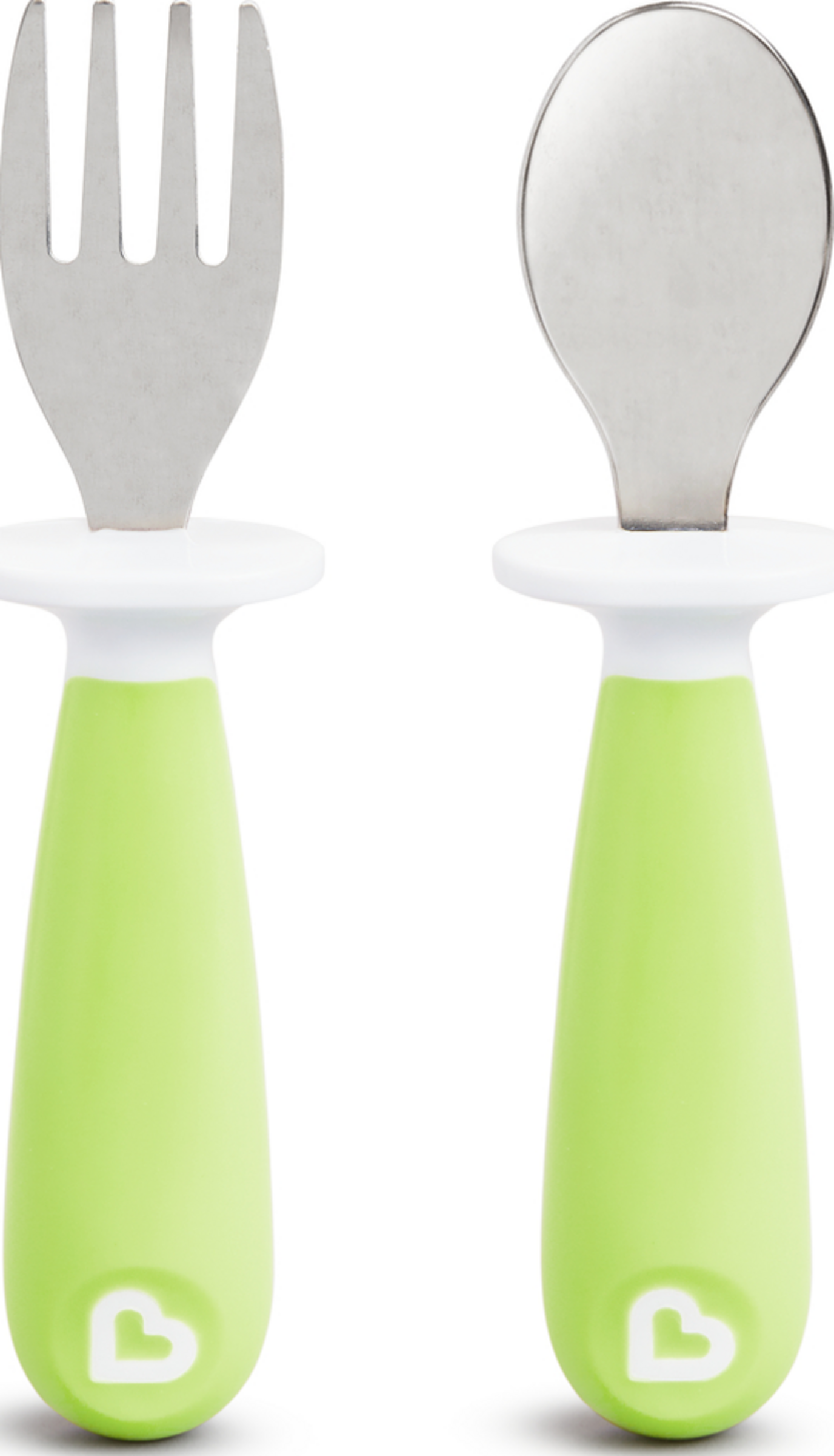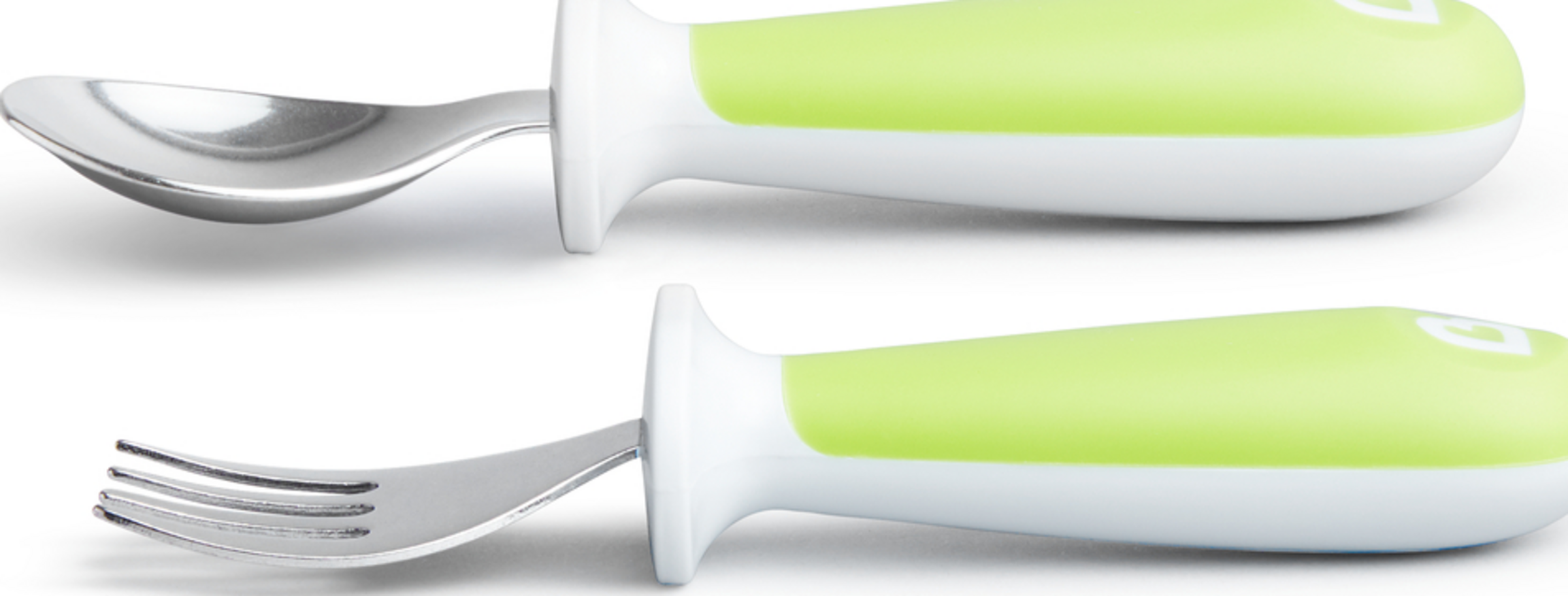 Når småbørn lærer at spise selvstændigt, kan tingene blive ret kaotiske ved spisebordet. Men med Munchkins bestiksæt kan du forhindre mange katastrofer. Gaflerne og skeerne er ergonomisk formet, så små hænder nemt kan holde om dem, og små munde nemt kan spise af dem. Og de har en anden fordel: Det hævede håndtag sikrer, at ske- og gaffelspidserne ikke hviler på bordet (eller gulvet). Det gør virkelig livet som forælder lettere!