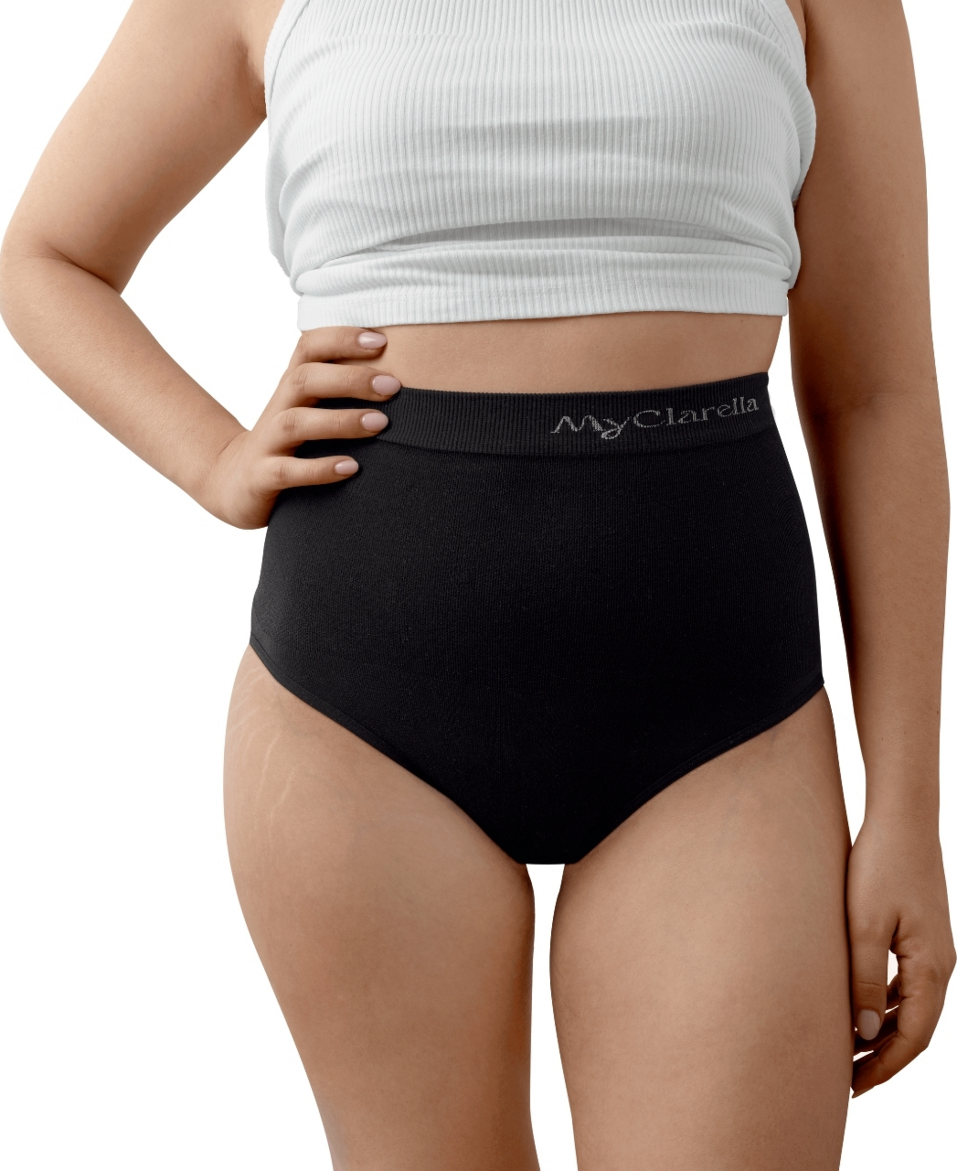 De ekstra bløde og ekstra højtskårne trusser hjælper din krop med at genoprette bugvæggen uden at udøve pres - takket være et fint indvævet kompressionsbånd.