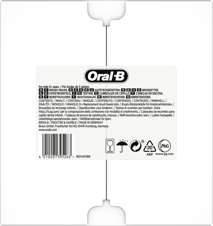 - Leveringsomfang: 8 Oral-B Kids børstehoveder (indpakket separat af hygiejniske årsager)