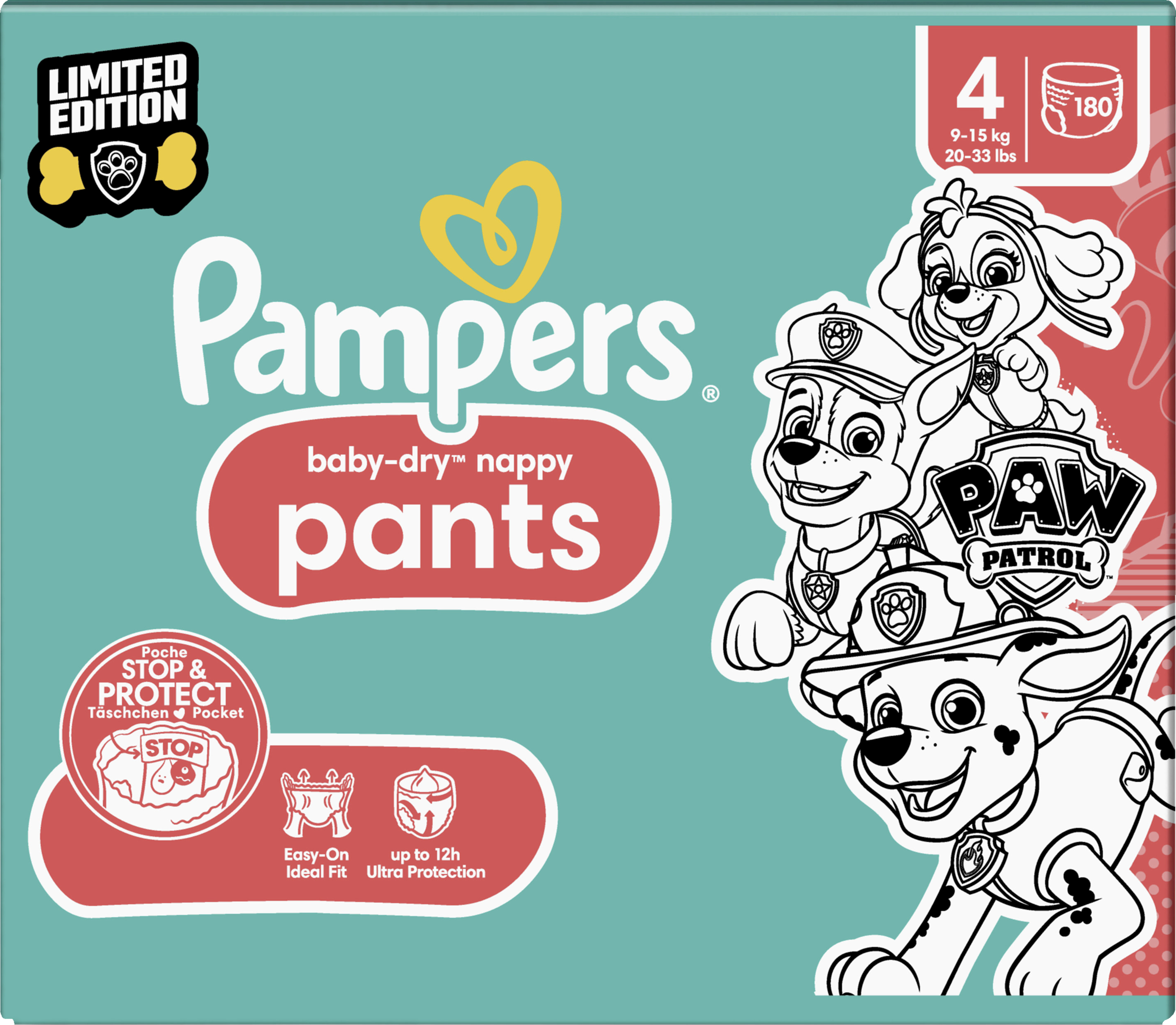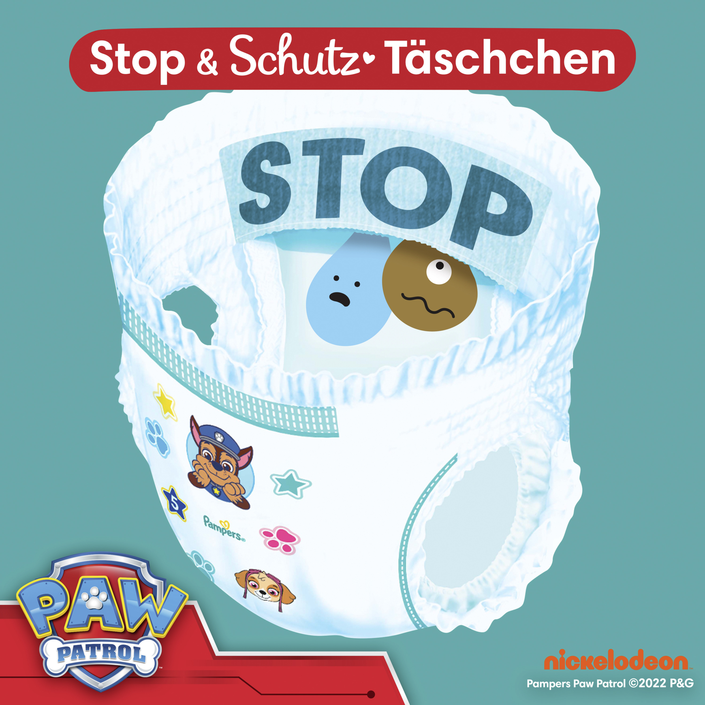 Pampers Baby-Dry Pants med revolutionerende STOP ; PROTECTION POCKET og 360° fit giver op til 12 timers beskyttelse mod lækage hele vejen rundt. Til hende er der også en superabsorberende kerne, som absorberer fugt med det samme, og sikkerhedsmanchetter, som forhindrer lækage ned ad benene. Når din baby begynder at blive mere aktiv og vender sig under bleskift, er det tid til Pampers Baby-Dry Pants, som er nemme at skifte takket være den strækbare linning hele vejen rundt. Med deres strækbare linning hele vejen rundt kan du give din baby dem på med Nur Die. Ligesom FÜR er din babys sikkerhed den højeste prioritet for Pampers: Pampers Baby-Dry Pants er dermatologisk testet og indeholder 0 % EU-parfumeallergener (i overensstemmelse med EU's kosmetikforordning nr. 1223/2009). Til hende er godkendt af dermatologer fra Skin Health Alliance og testet og certificeret i henhold til Oekotex Standard 100.