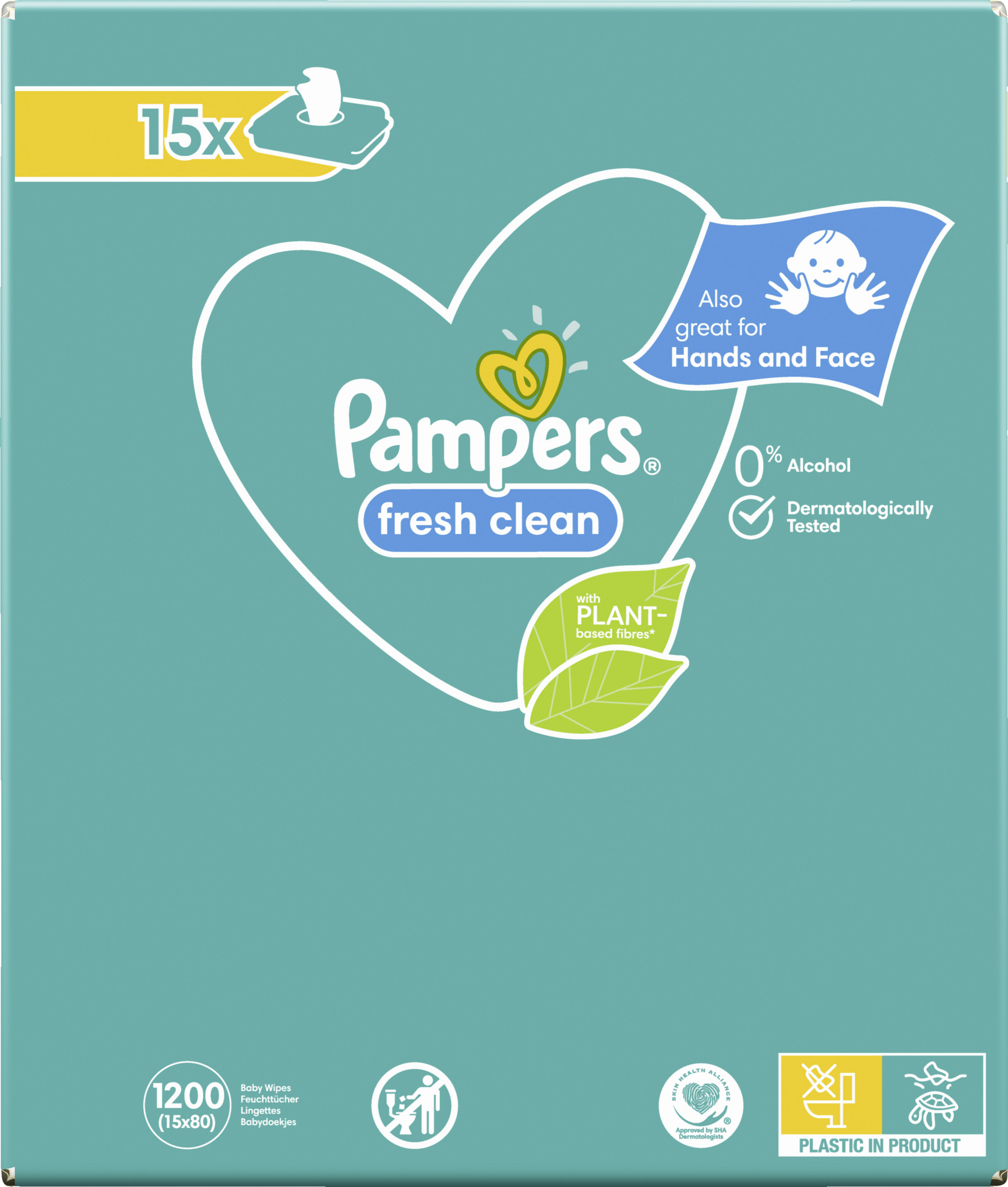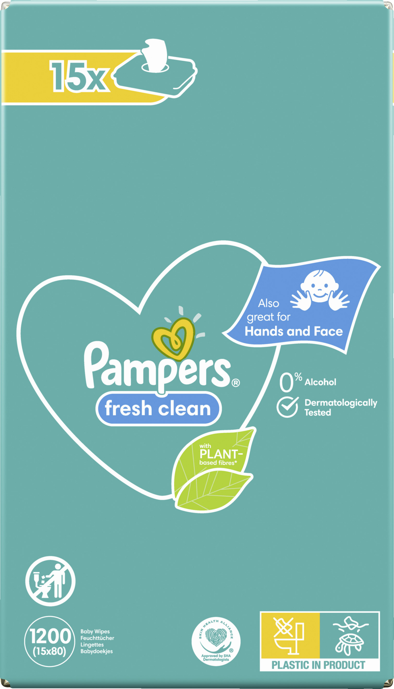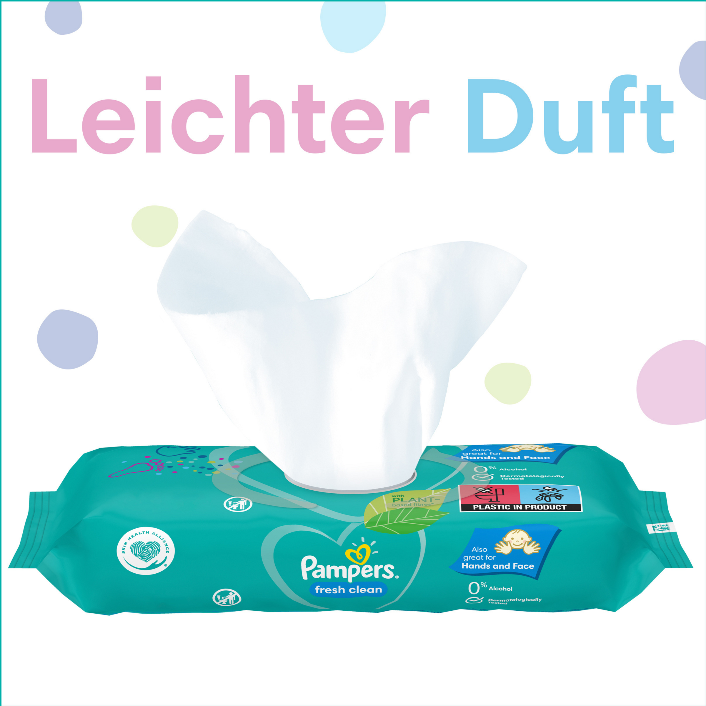 Pampers Fresh Clean vådservietter giver en endnu grundigere rengøring (sammenlignet med det tidligere produkt) takket være den blødere og stærkere klud, men stadig med den forfriskende duft, som du og din baby elsker så højt. Enzymerne i urin og afføring ændrer pH-værdien i babyhudens sarte hud og øger risikoen for irritation og bleudslæt. Alle Pampers vådservietter indeholder en unik formel, der beskytter babyhudens naturlige pH-værdi bedre end bomuld og vand. Pampers Fresh Clean vådservietter er dermatologisk testet og godkendt af dermatologer fra Skin Health Alliance. Da Pampers Fresh Clean vådservietter er udviklet til følsom babyhud, indeholder de ikke alkohol eller farvestoffer.