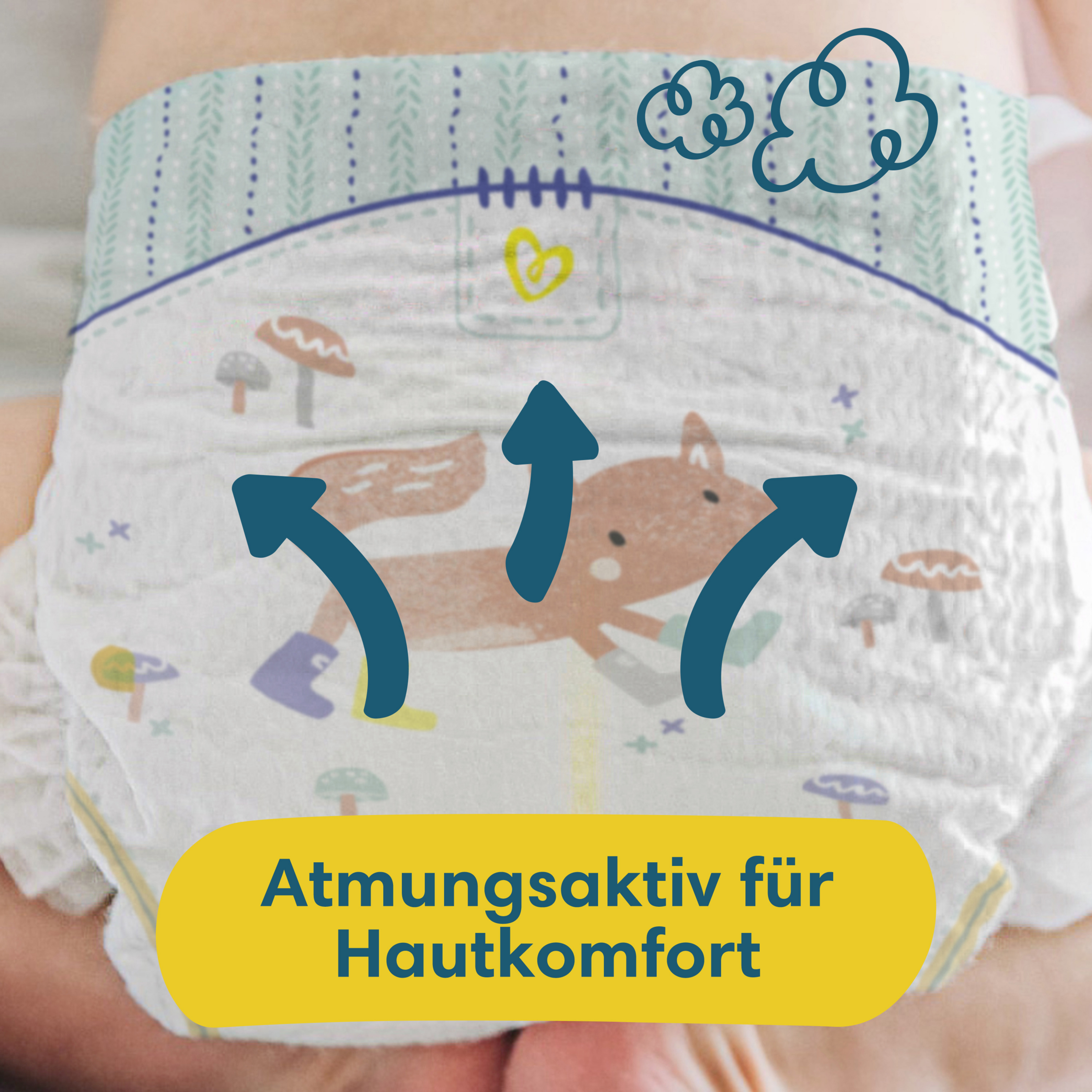 Pampers Premium Protection bleer - nr. 1 på tyske fødeafdelinger (baseret på distributionsdata fra januar 2023 på fødeafdelinger i Tyskland) - er 100 % sikre for babyhud: De er dermatologisk testet og fri for 26 EU-parfumeallergener.