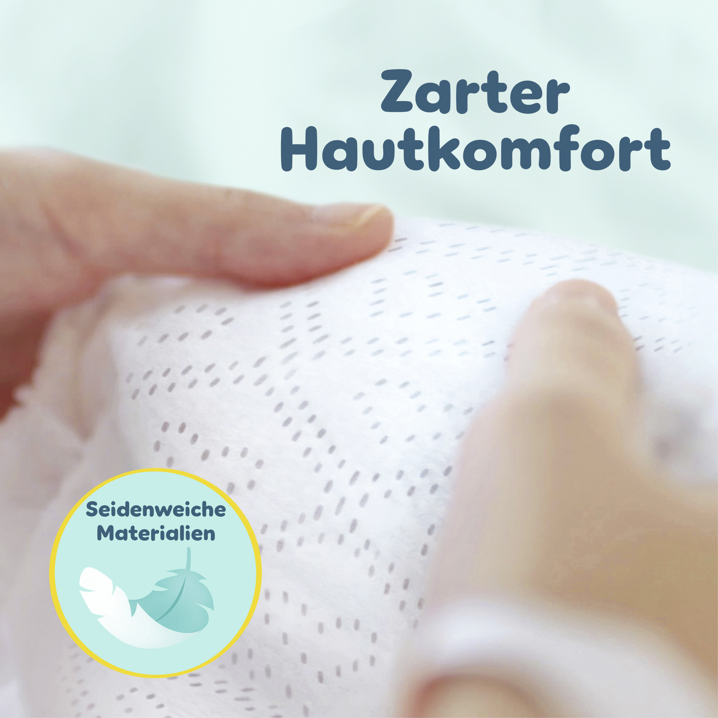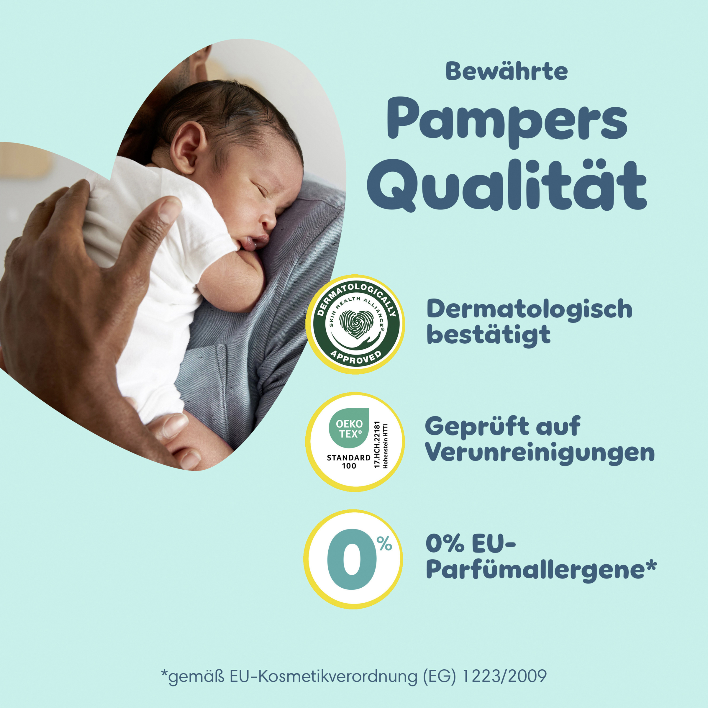 Pampers Premium Protection bleer - nr. 1 på tyske fødeafdelinger (baseret på distributionsdata fra januar 2023 på fødeafdelinger i Tyskland) - er 100 % sikre for babyhud: De er dermatologisk testet og fri for 26 EU-parfumeallergener.