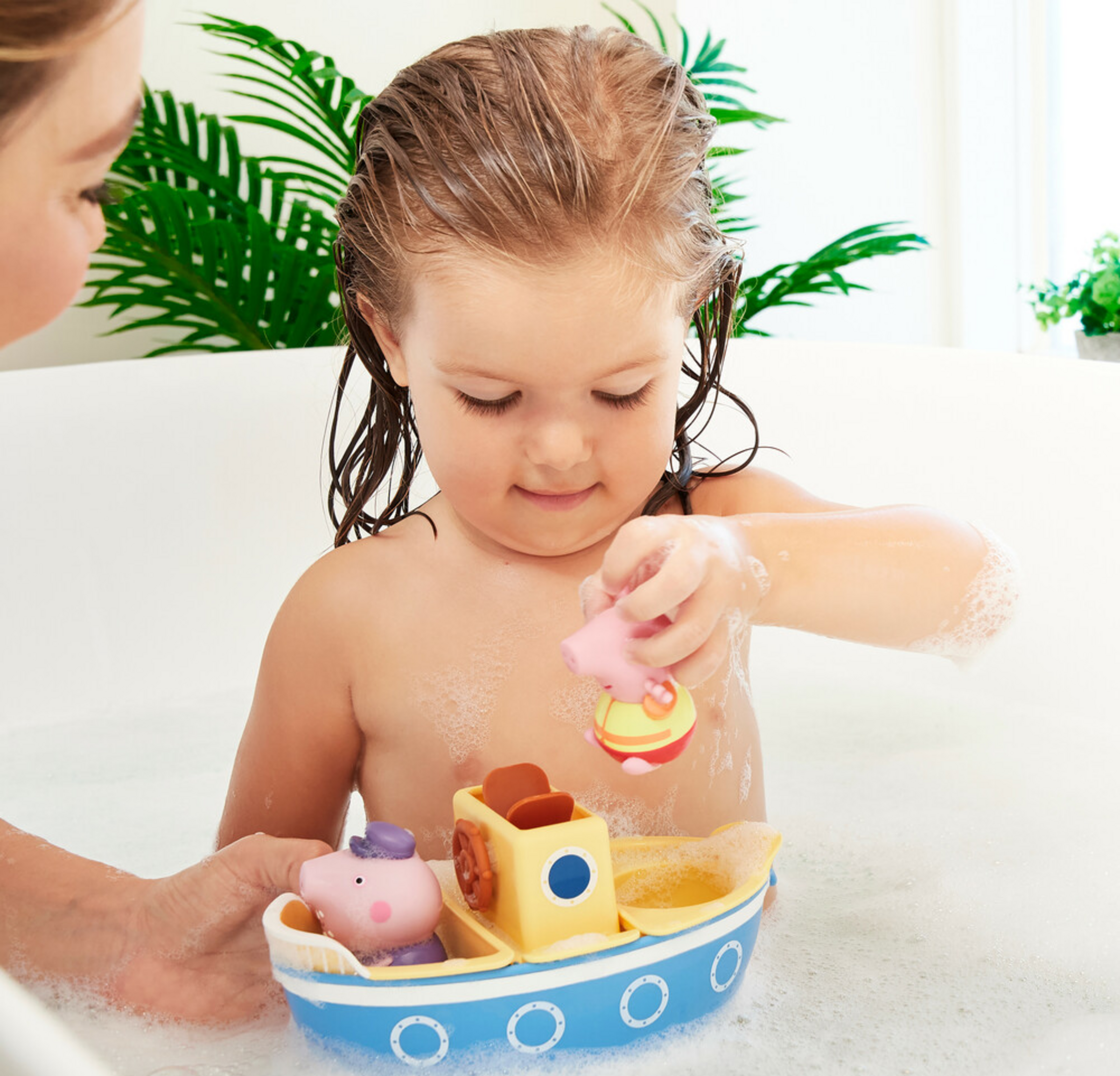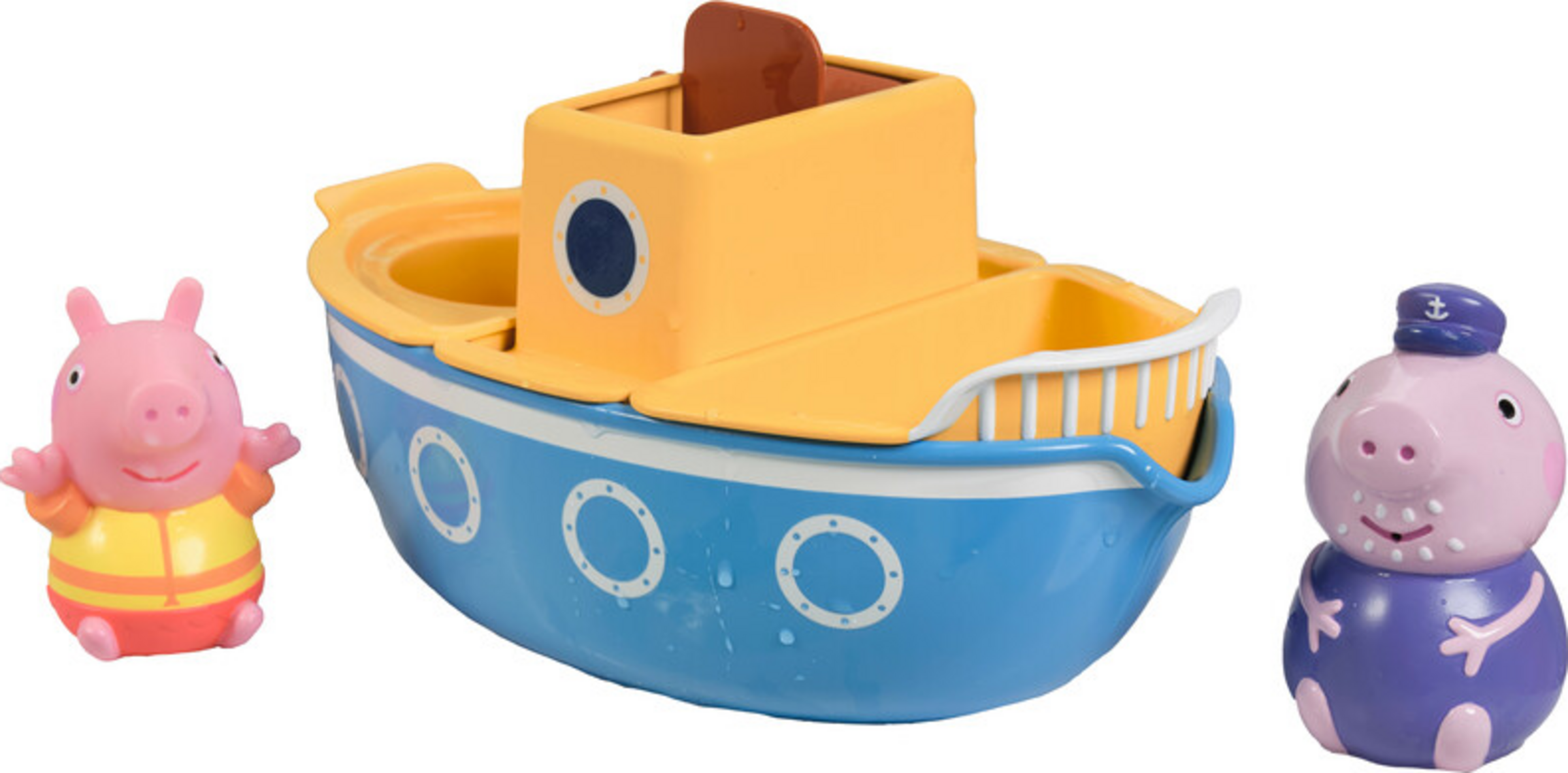 En tur på vandet med bedstefar Wutz vil med garanti gøre dig i godt humør. For at sejle sin båd er en af hans yndlingsbeskæftigelser, og han har fire måder at lave bølger på! Der er tre legende dele inde i det havblå skrog. I den ene ende kan der foldes en sektion ud, som de små kan fylde med vand og bruge som vanddispenser. I den anden ende er der en anden del, der sprøjter et andet mønster. Du skal bare fylde op, og så er du i gang!