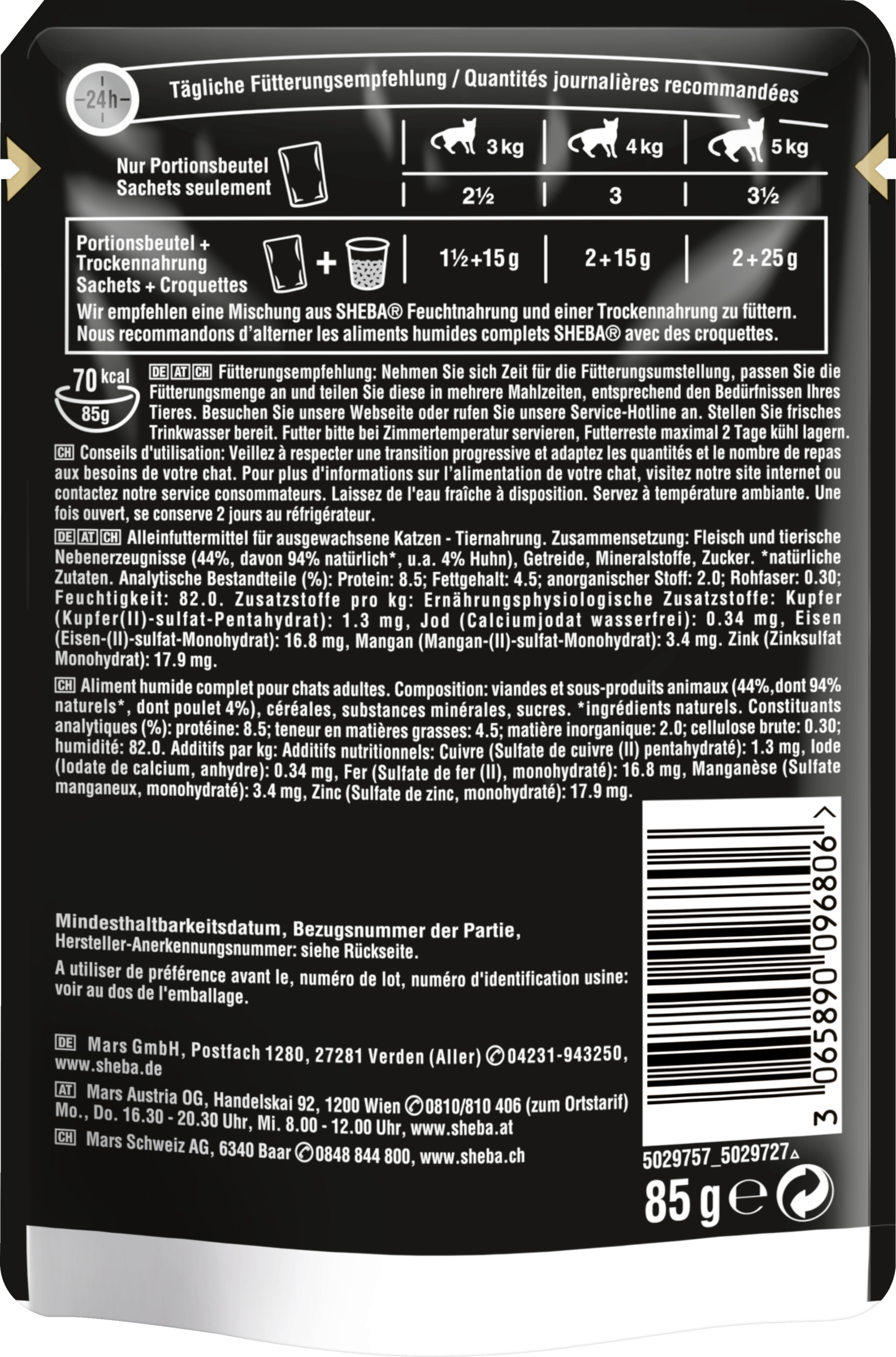 Det anbefales, at du serverer en blanding af SHEBA®-vådfoder og et tørfoder.