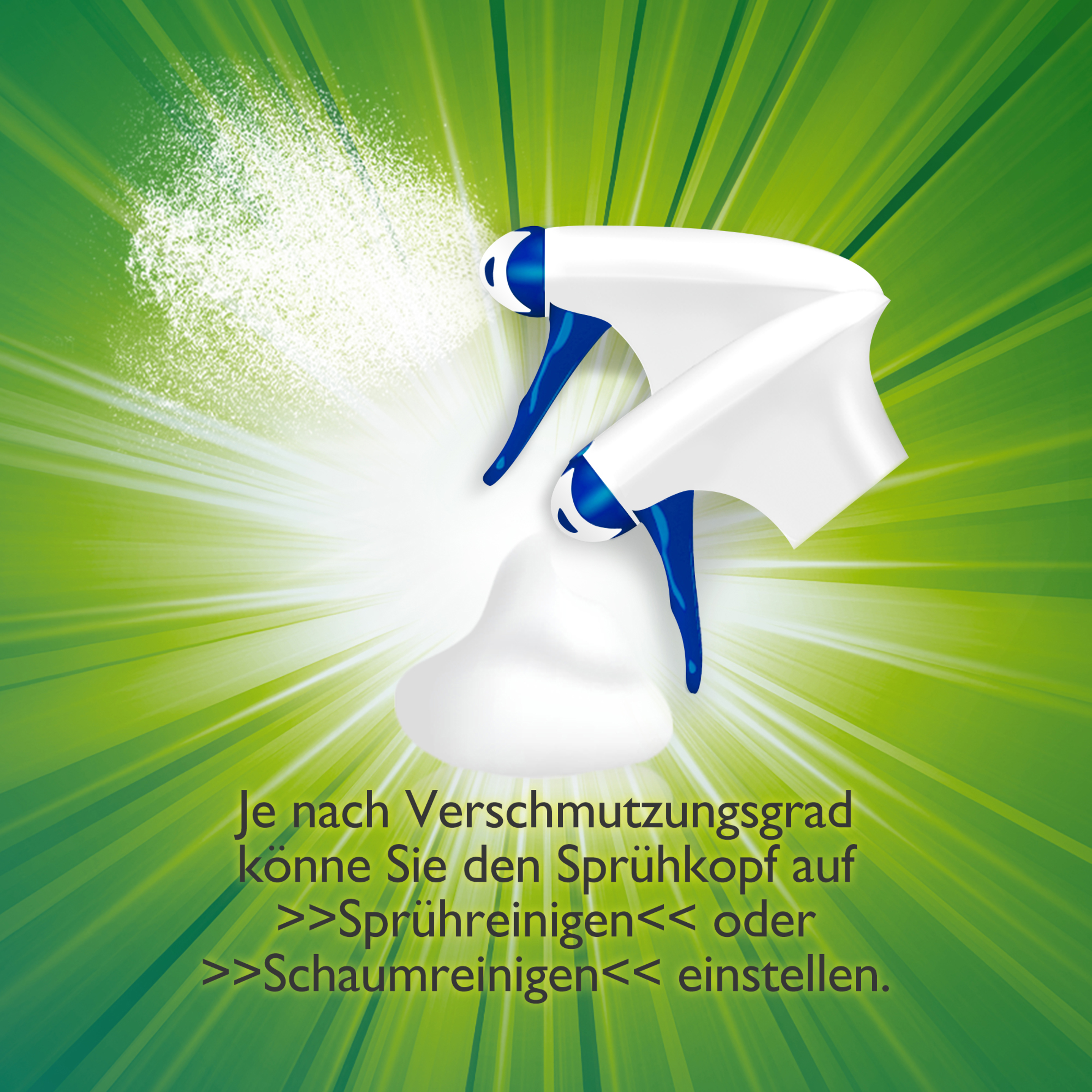 - Flyt sien på flaskeåbningen, og vælg mellem to rengøringsfunktioner: Skumfunktion (si lukket) eller sprayfunktion (si åben).