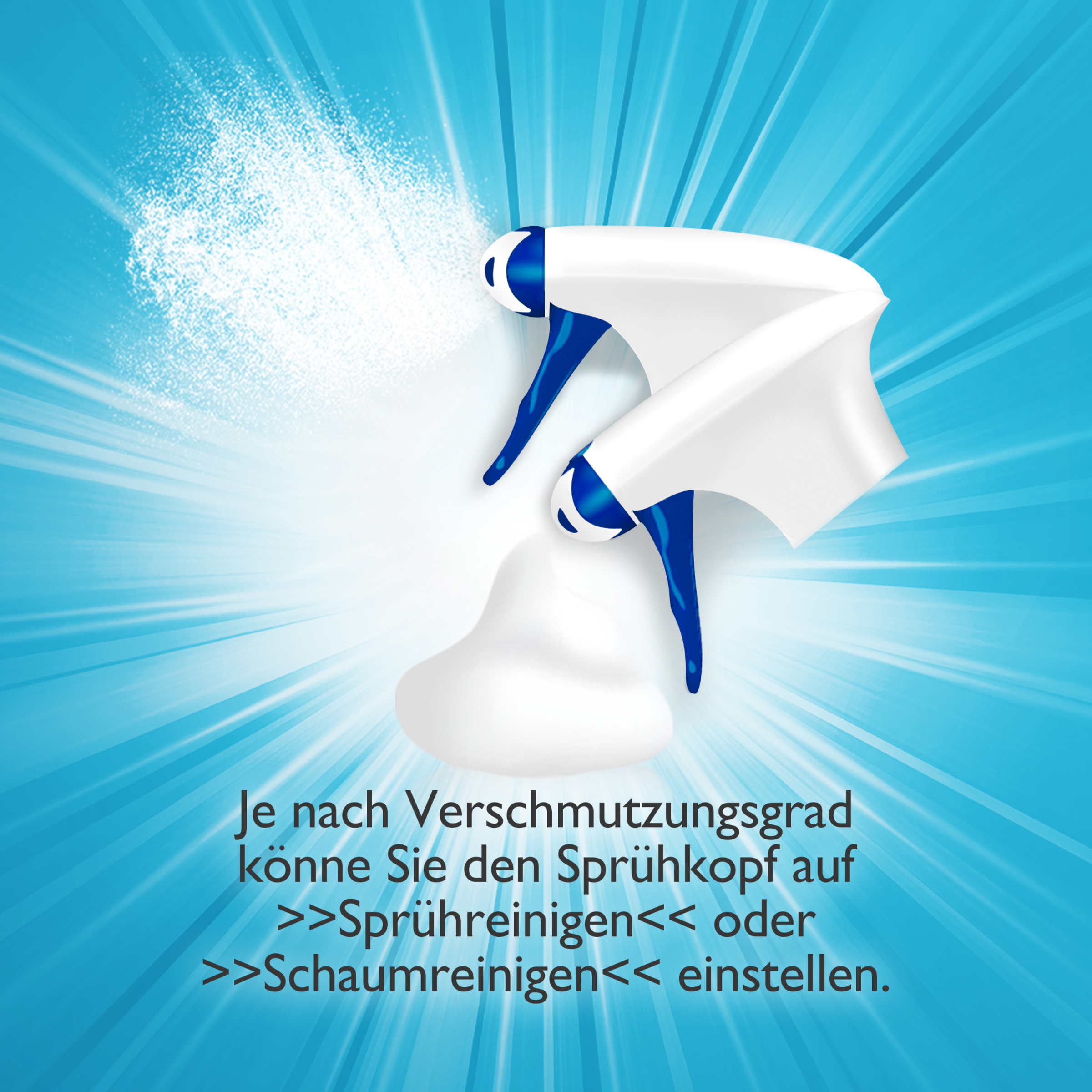 - Flyt sien på flaskeåbningen, og vælg mellem to rengøringsfunktioner: Skumfunktion (si lukket) eller sprayfunktion (si åben).