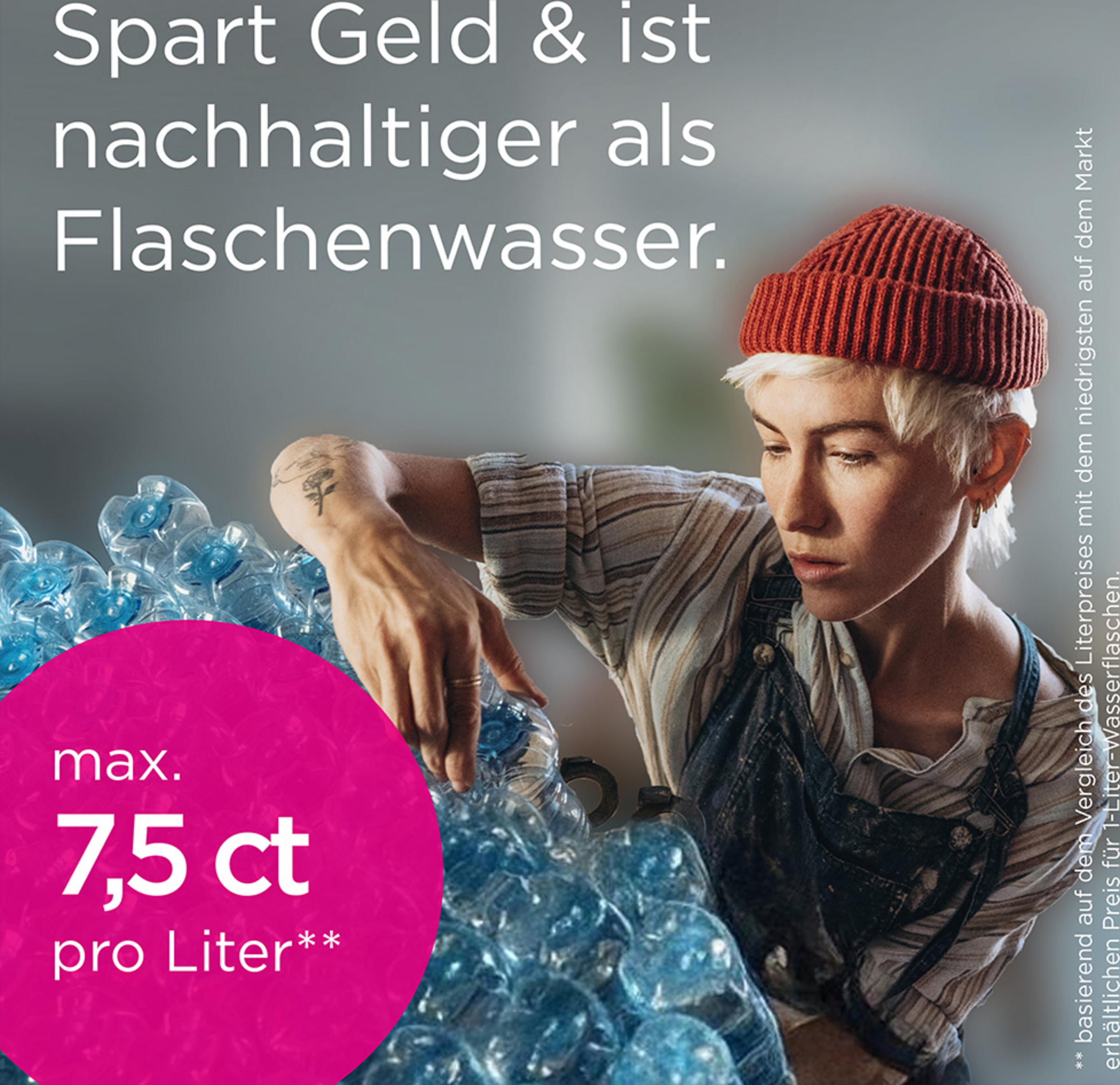 ** basierend auf dem Vergleich des Literpreises mit dem niedrigsten auf dem Markt erhältlichen Preis für 1-Liter-Wasserflaschen.