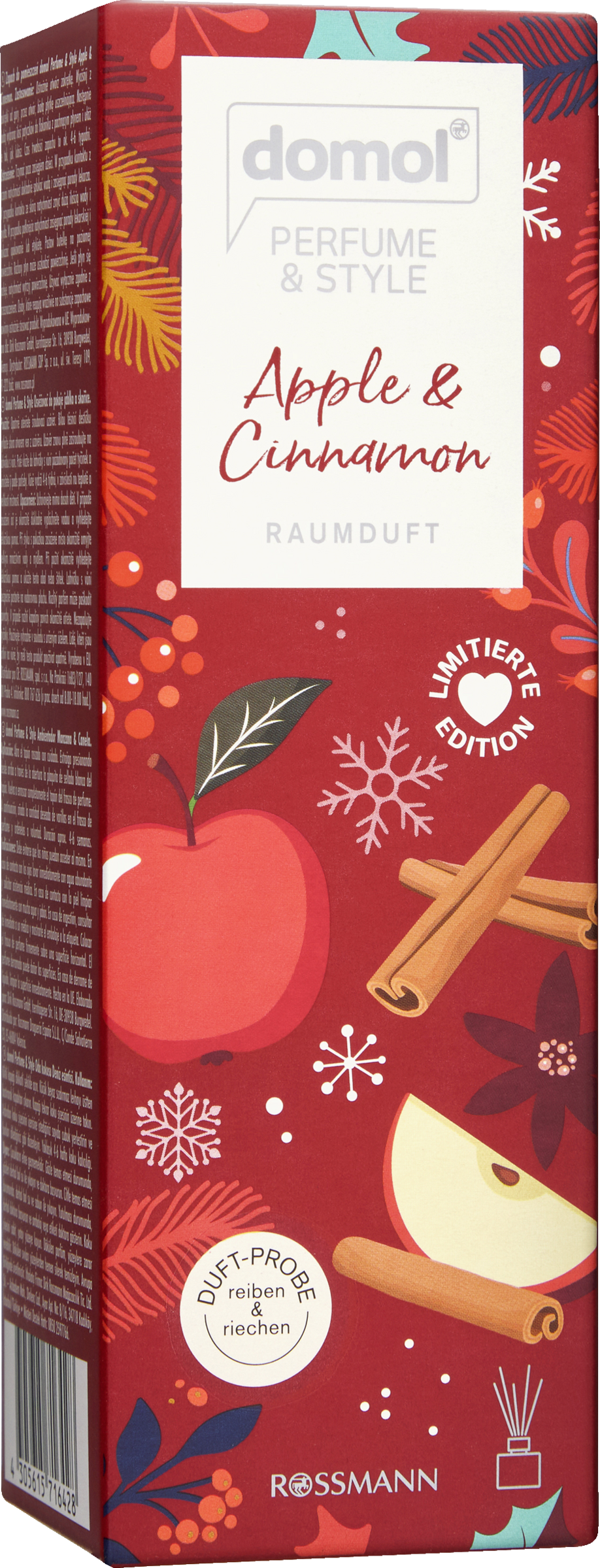 Nyd en hyggelig og eftertænksom atmosfære med duften af vinteræble og akkorder af blomme, vanilje og kanel. Den stilfulde kombination af duftflaske, pinde og aromaer af høj kvalitet kan bruges i hele stuen og vil give dine rum en frisk note i ugevis.