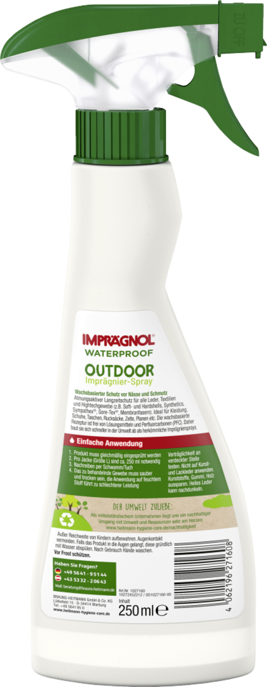 Voksbaseret beskyttelse mod fugt og snavs Åndbar langtidsbeskyttelse til alt læder, tekstiler og højteknologiske stoffer (f.eks. bløde og hårde skaller, syntetiske stoffer, Sympathex®, Gare-Tex®, membranfibre). Ideel til tøj, sko, tasker, rygsække, telte, presenninger osv. Den voksbaserede formel er fri for perfluorcarboner (PFC). Til hende nedbrydes derfor hurtigere i miljøet end konventionelle imprægneringssprays.