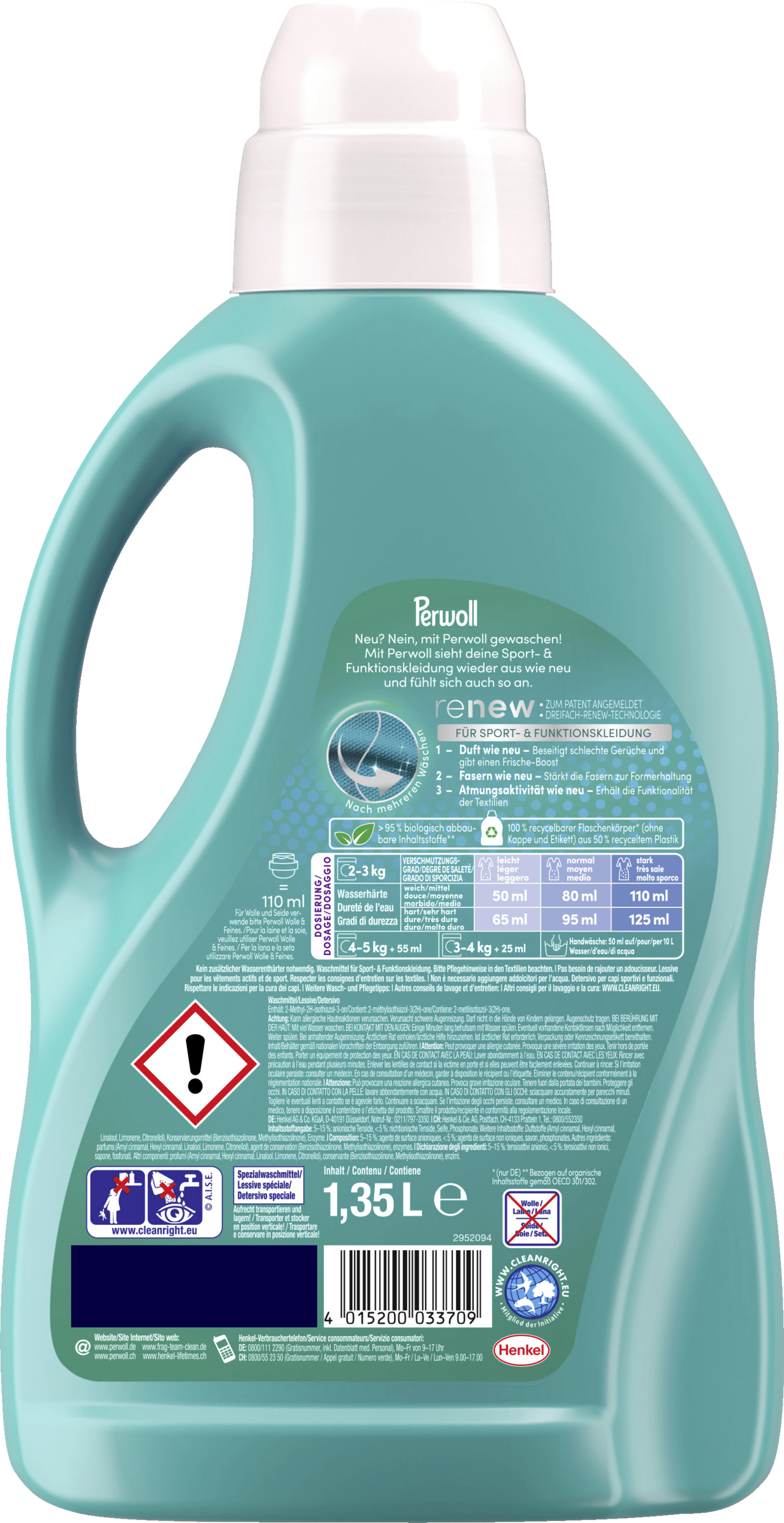 - PERWOLL Sport - Sportsvaskemidlet med triple renew teknologi er specielt udviklet til vask af funktionelt tøj, bevarer elasticiteten og fremmer åndbarheden,