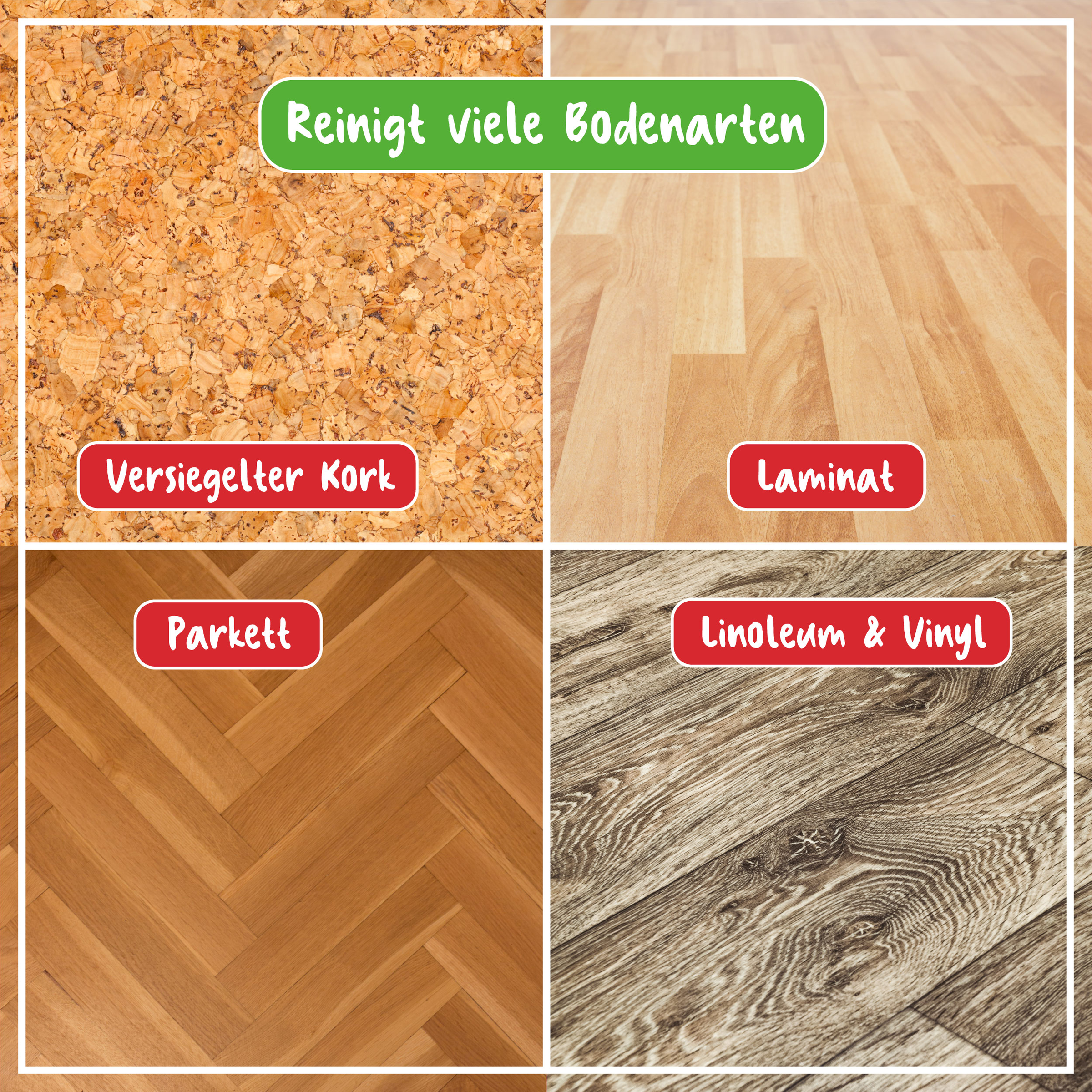 Tag servietten ud, og spænd den op på en egnet moppe, eller brug den helt enkelt med hånden. Aftør og lad tørre som vanligt – eftertørring er ikke nødvendig! Luk emballagen tæt til igen, når du har taget en serviet. Brugte servietter bortskaffes helt enkelt sammen med husholdningsaffaldet. Grovere snavs skal støvsuges op eller fejes sammen på forhånd. På sarte overflader (f.eks. olierede eller voksbehandlede gulve) skal produktet først afprøves på et usynligt sted.