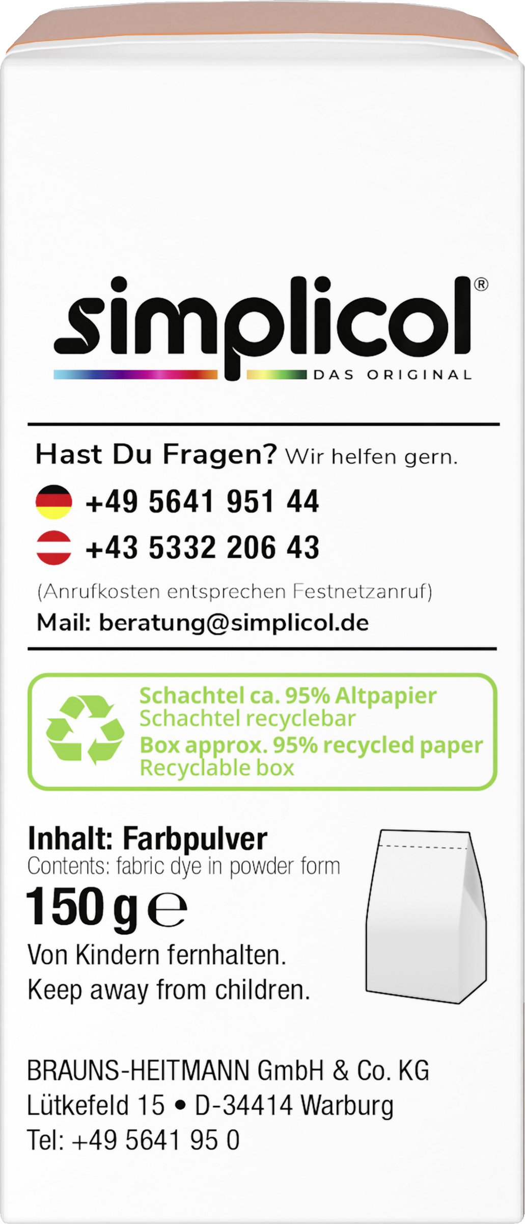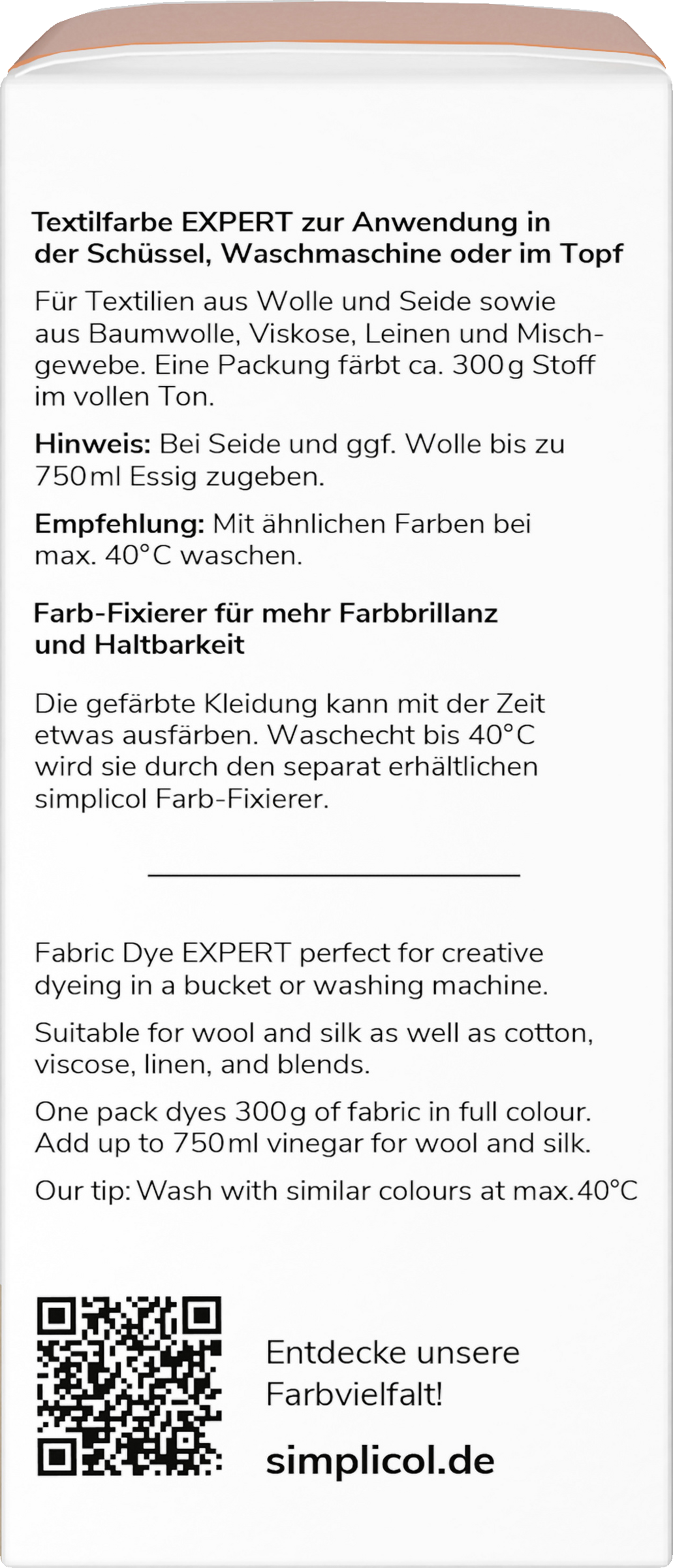 - Brug maksimalt tre pakker simplicol Textile Colour Expert pr. farvning