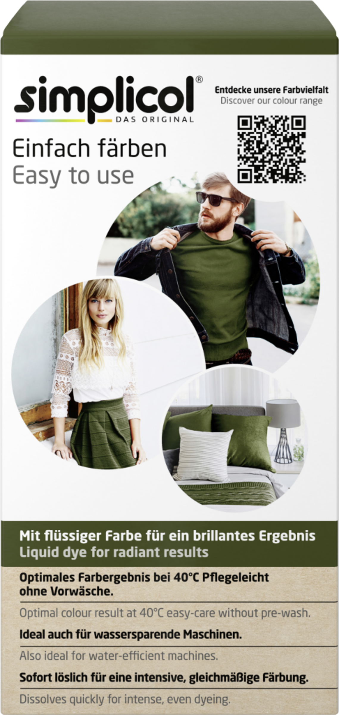 Elsk farver, lev kulørt: Det er meget nemt med simplicol intensiv tekstilfarve. Giv dit tøj og tekstiler til hjemmet et nyt look i bare én vaskecyklus.