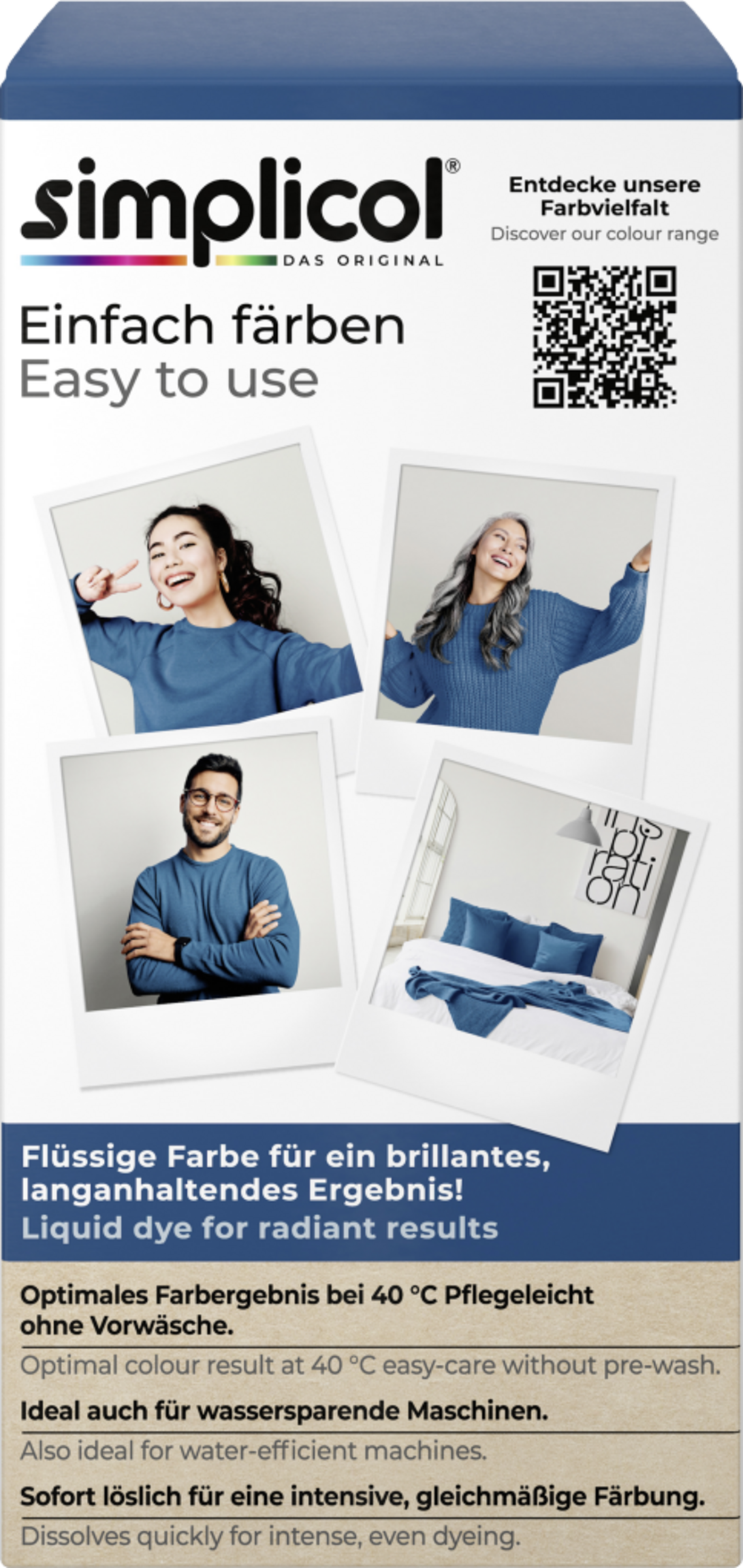 Elsk farver, lev kulørt: Det er meget nemt med simplicol intensiv tekstilfarve. Giv dit tøj og tekstiler til hjemmet et nyt look i bare én vaskecyklus.