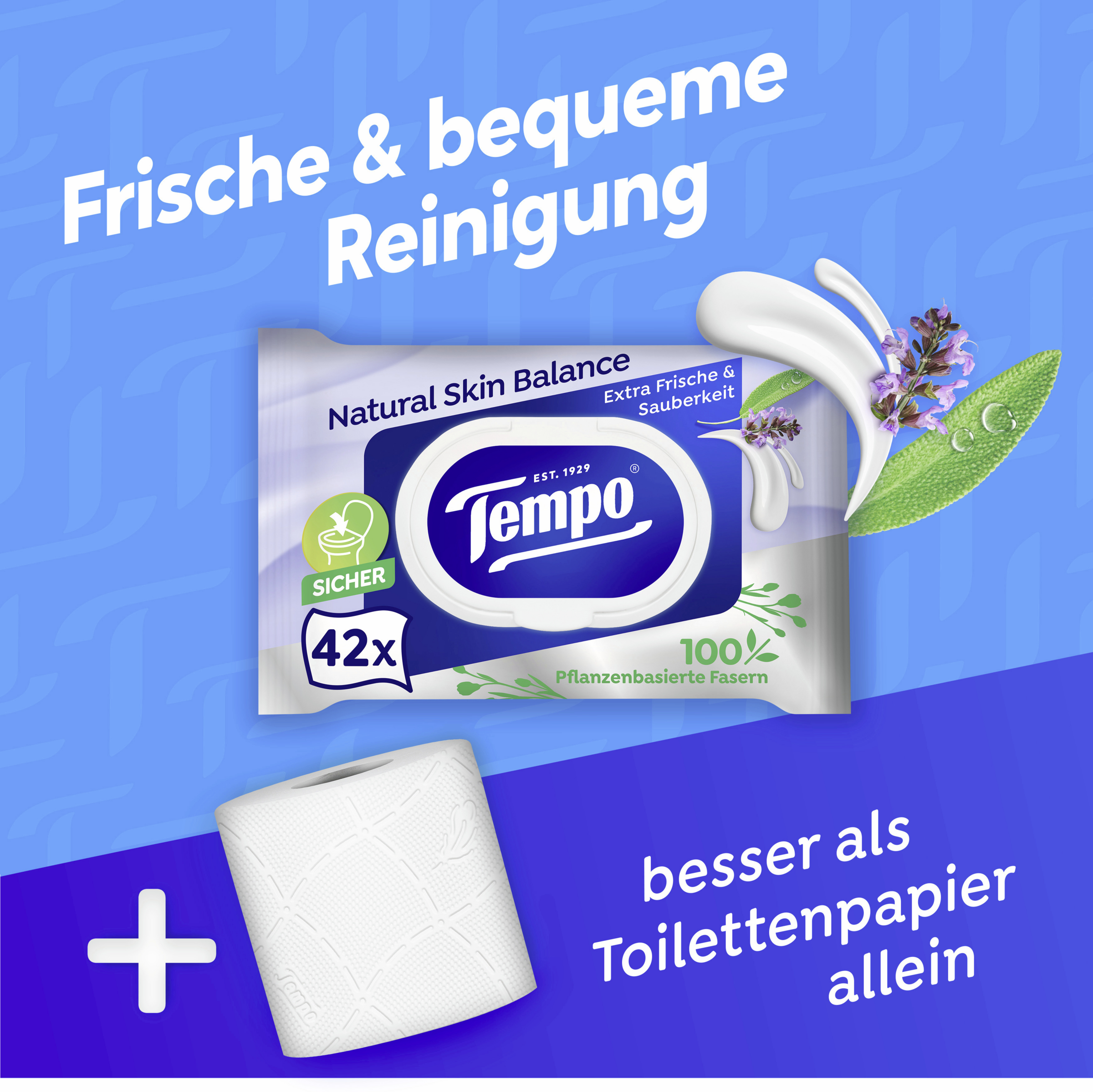 Tempo fugtige toiletservietter kombinerer pålidelig styrke og skånsom rengøring. De plastfrie, skylbare klude rengør mere hygiejnisk end tørt toiletpapir alene og er skånsomme mod din hud. Med flere varianter opfylder Tempo fugtige toiletservietter alle dine forskellige behov, så du føler dig opfrisket og plejet, samtidig med at du får den samme blide Tempo-følelse, som du kender og elsker.