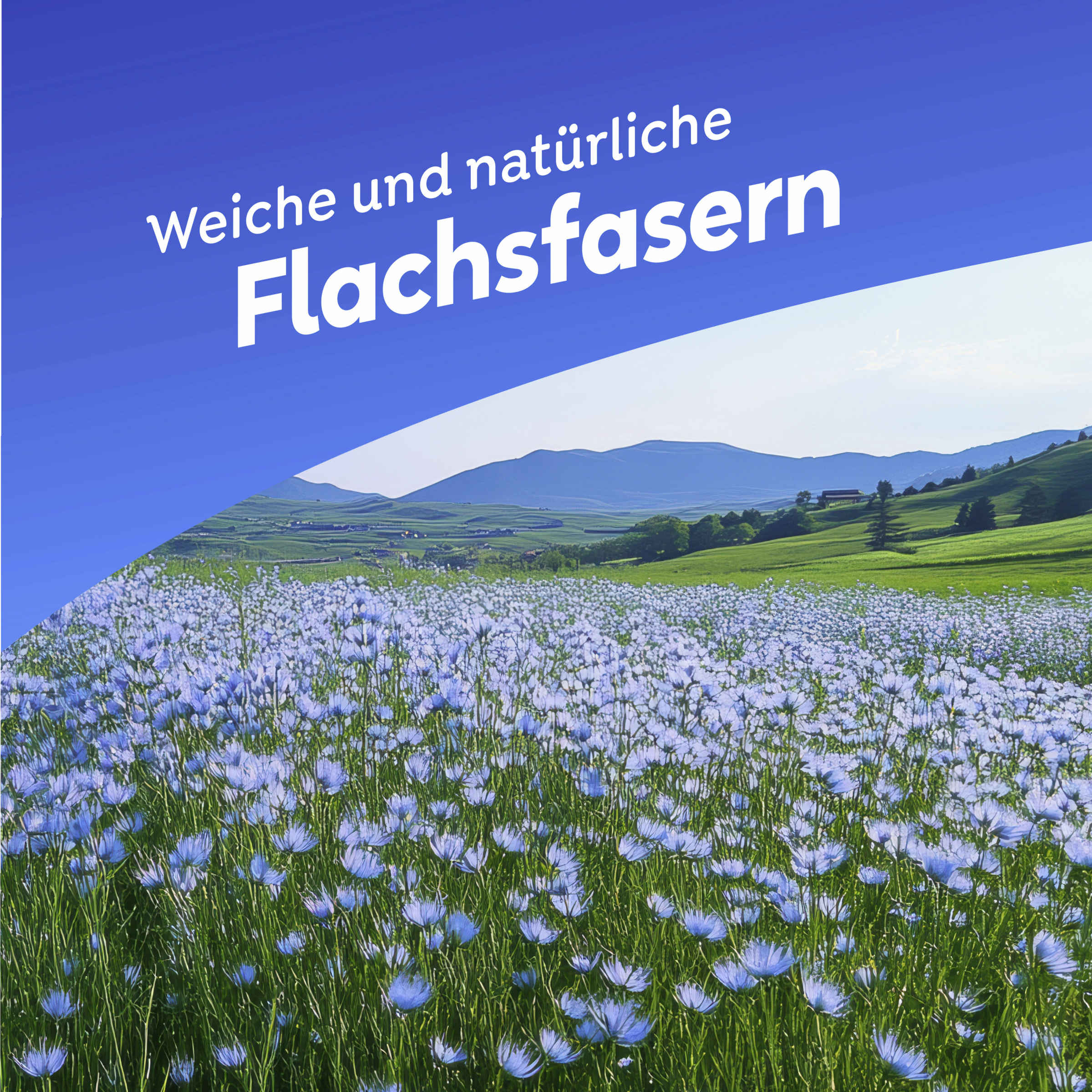 - 100 % plantebaserede fibre og de første med hørindhold*: vedvarende fibre fra hurtigtvoksende hørplanter