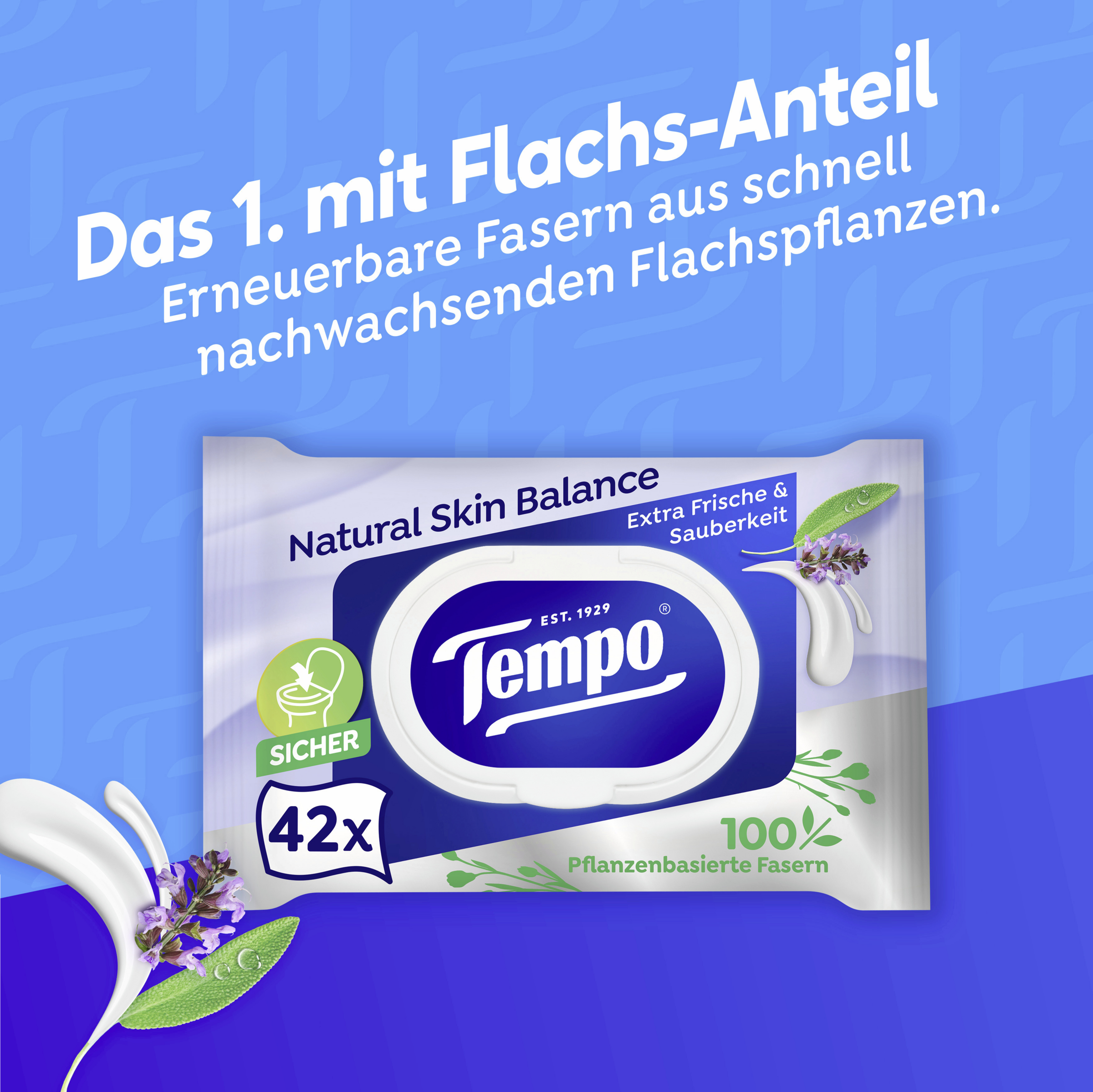 Tempo fugtige toiletpapir er fremstillet af 100 % plantebaserede fibre med indhold af hør og er udviklet for at lette presset på skovene og dermed gøre noget for vores planet. De plastfrie klude kan trygt skylles ud i toilettet ligesom tørt toiletpapir. Tempo fugtige toiletservietter er dermatologisk testet og er også velegnede til følsom hud. Integrer den perfekte 2-trins rengøringsproces med tørt toiletpapir og Tempo fugtige toiletservietter i din daglige hygiejnerutine, og føl dig pålideligt frisk hver gang. Den genanvendelige emballage*** til Tempo fugtige toiletpapir er udstyret med en fugtforsegling, der holder arkene fugtige og hygiejniske.