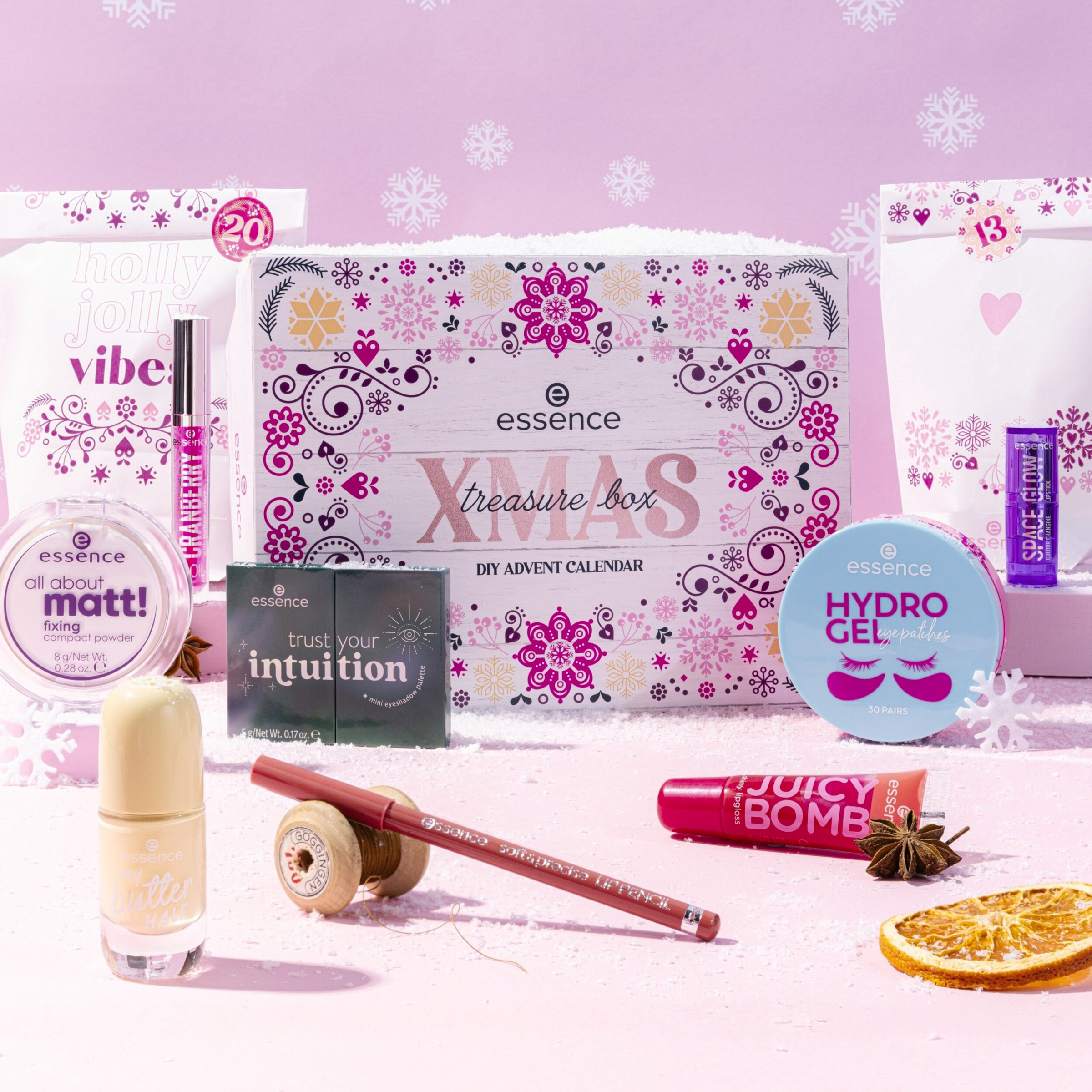 Start din personlige nedtælling til jul med en daglig dosis skønhedsglæde! essence XMAS treasure box DIY ADVENT CALENDAR er ideel til at overraske venner, familie - eller dig selv - med 24 skønhedshøjdepunkter. En magisk nedtælling - lavet med kærlighed!