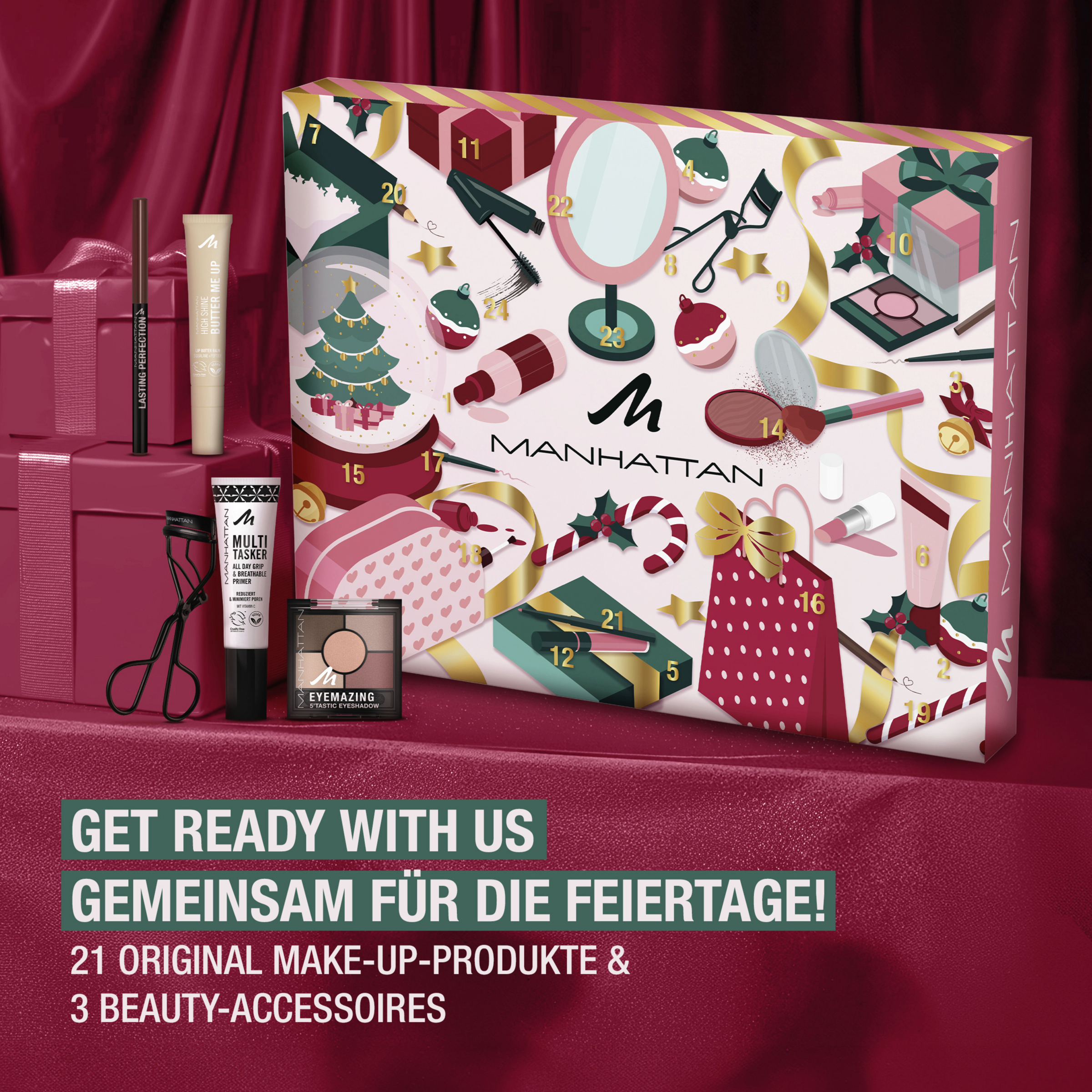 Åbn en af de 24 døre hver dag fra den 1. december, og bliv overrasket med MANHATTAN-makeup-produkter og skønhedsredskaber i fuld størrelse!