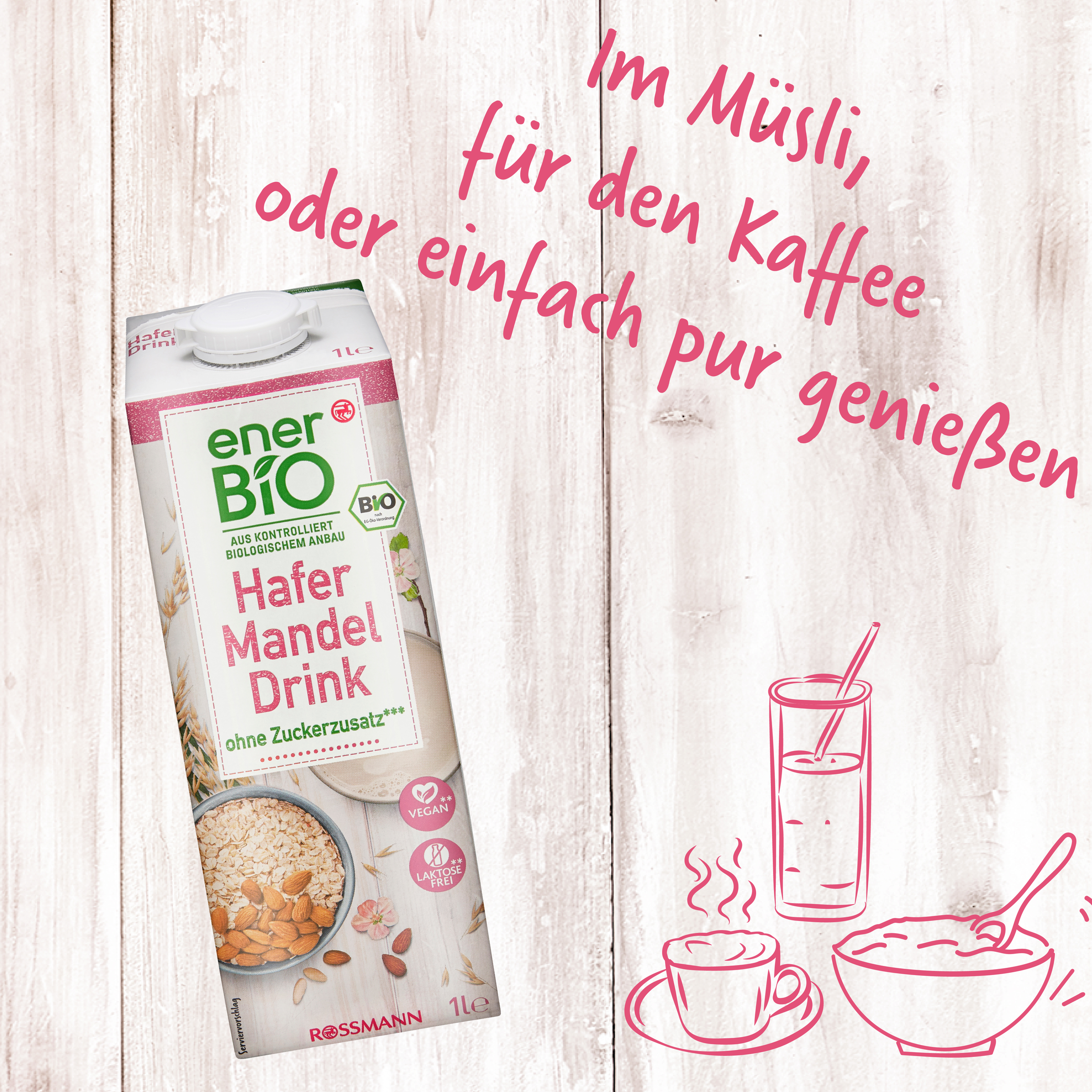 Vidste du, at ...? Vores enerBiO Oat Almond Drink forfiner ikke kun Varme drikke og morgenmad med sin nøddesmag - den er også ideel til Bagning og giver Desserter det rigtige touch. Og alt uden tilsat sukker***!