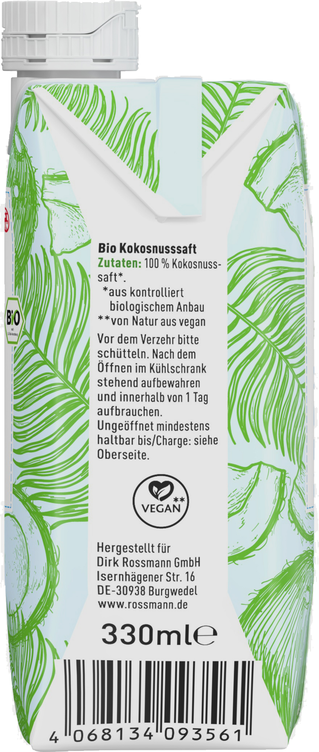 Vores veganske enerBiO natural coconut water består af 100 % ren kokosnøddejuice - uden tilsat sukker. Det udvindes direkte i oprindelseslandet af omhyggeligt forarbejdede økologiske kokosnødder.