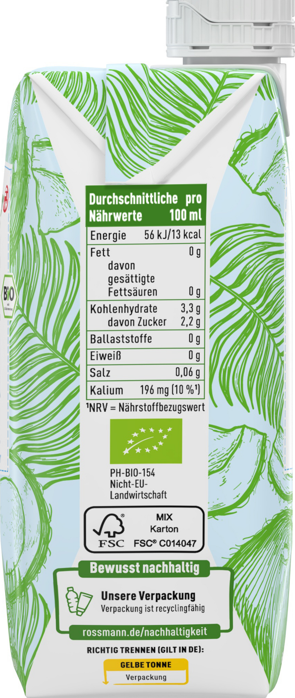 Uanset om det er afkølet rent, som et let alternativ til frugtjuice eller som en forfriskende base for hjemmelavede smoothies - vores økologiske kokosvand med naturligt kalium smager fantastisk efter sport, på farten eller bare mellem måltiderne.