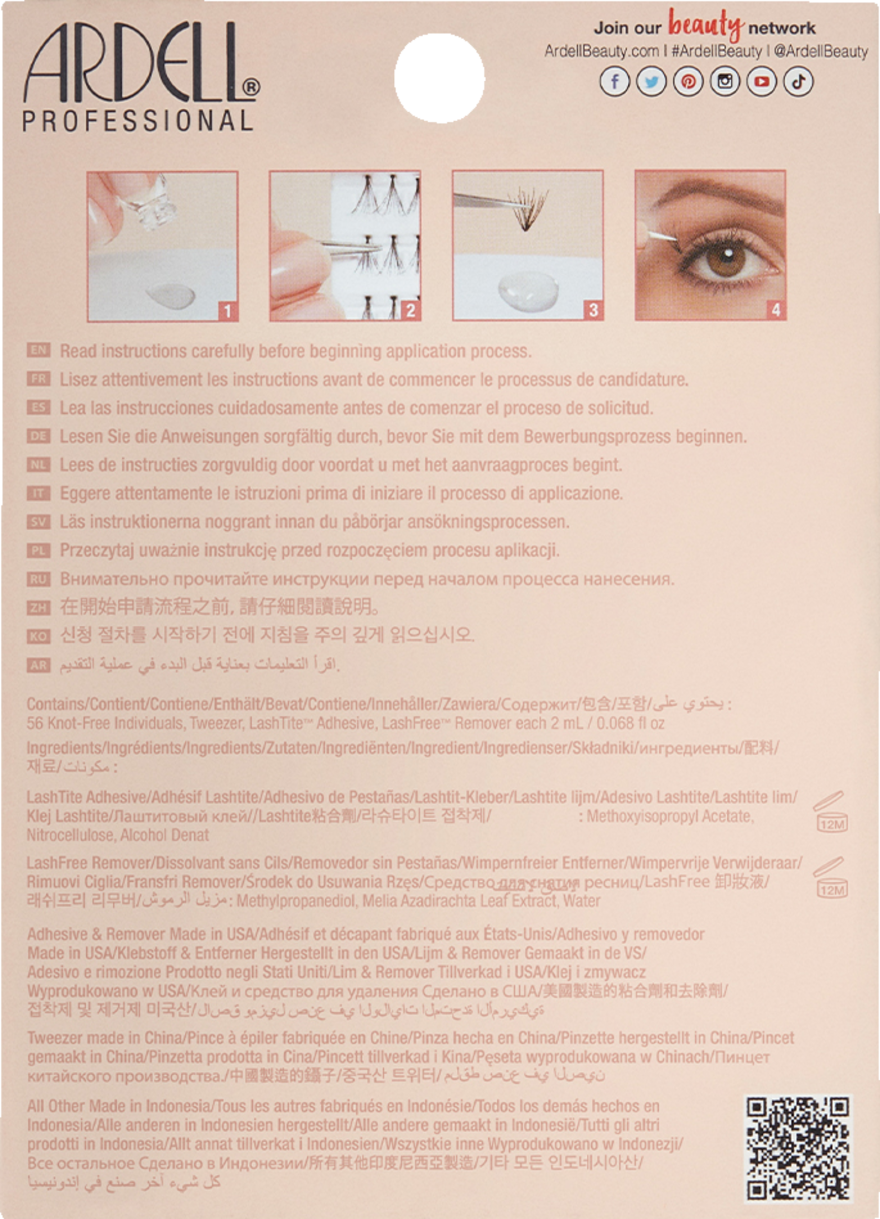 Vippejunkier, pas på! ARDELL har det perfekte sæt til DIY-extensions derhjemme, så du slipper for dyre salonbesøg! Få et hurtigt og individuelt look med NAKED extensions. Fra naturlige til voluminøse tilpasser de sig ethvert look og skaber altid et fantastisk naturligt øjenlook. Startsættet indeholder 56 Naked 3D extensions i forskellige længder samt en LashTite vippelim, LashFree Remover og en pincet. Enkeltvipperne kan påføres på eller under dine egne vipper og holder i op til 14 dage, vandfast.