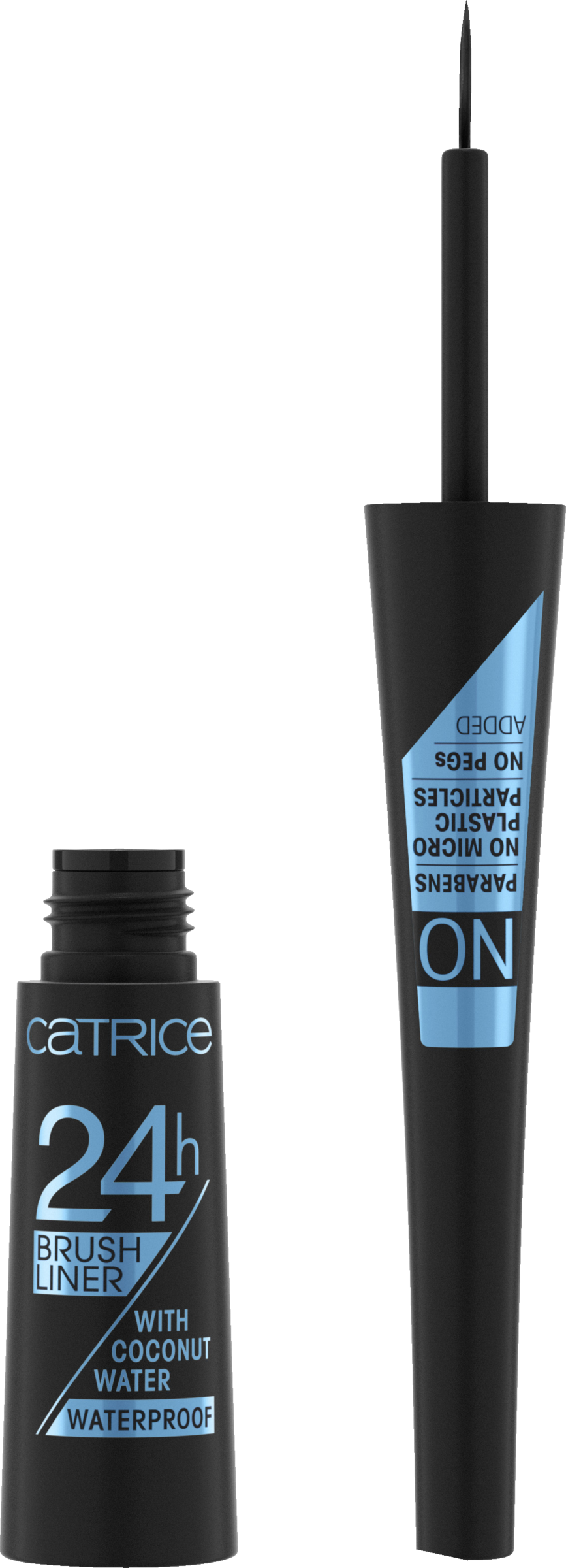 24h Brush Liner giver præcise øjenlinjer med kun én påføring og værdifuld pleje og er desuden fri for parabener, mikroplastpartikler og PEG. Takket være den fleksible og fine pensel kan den dybsorte tekstur påføres meget præcist på vippekanten – så du nemt kan skabe både fine øjenlinjer og dramatiske katteøjne med ekstreme vinger. Den veganske, langtidsholdbare 24-timers formel med fugtgivende kokosnøddevand giver en smuk, mat finish.