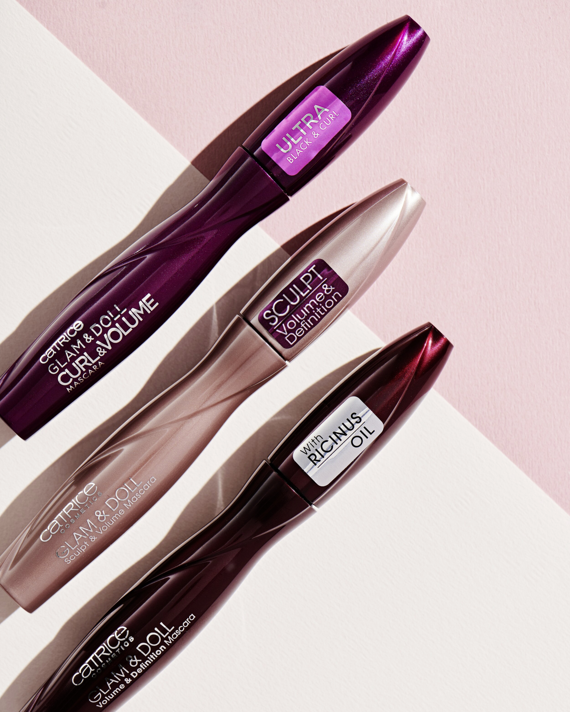 BUEDE VIPPER: Perfekte doll eyes med smukt buede vipper. Glam & Doll Curl & Volume Mascara med sin buede børste og dybe sorte struktur sikrer holdbart buede vipper og udtryksfuld volumen. Takket være sin specielle form fanger fiberbørsten virkelig hver eneste vippe og omslutter den for den trendy doll eye-effekt.