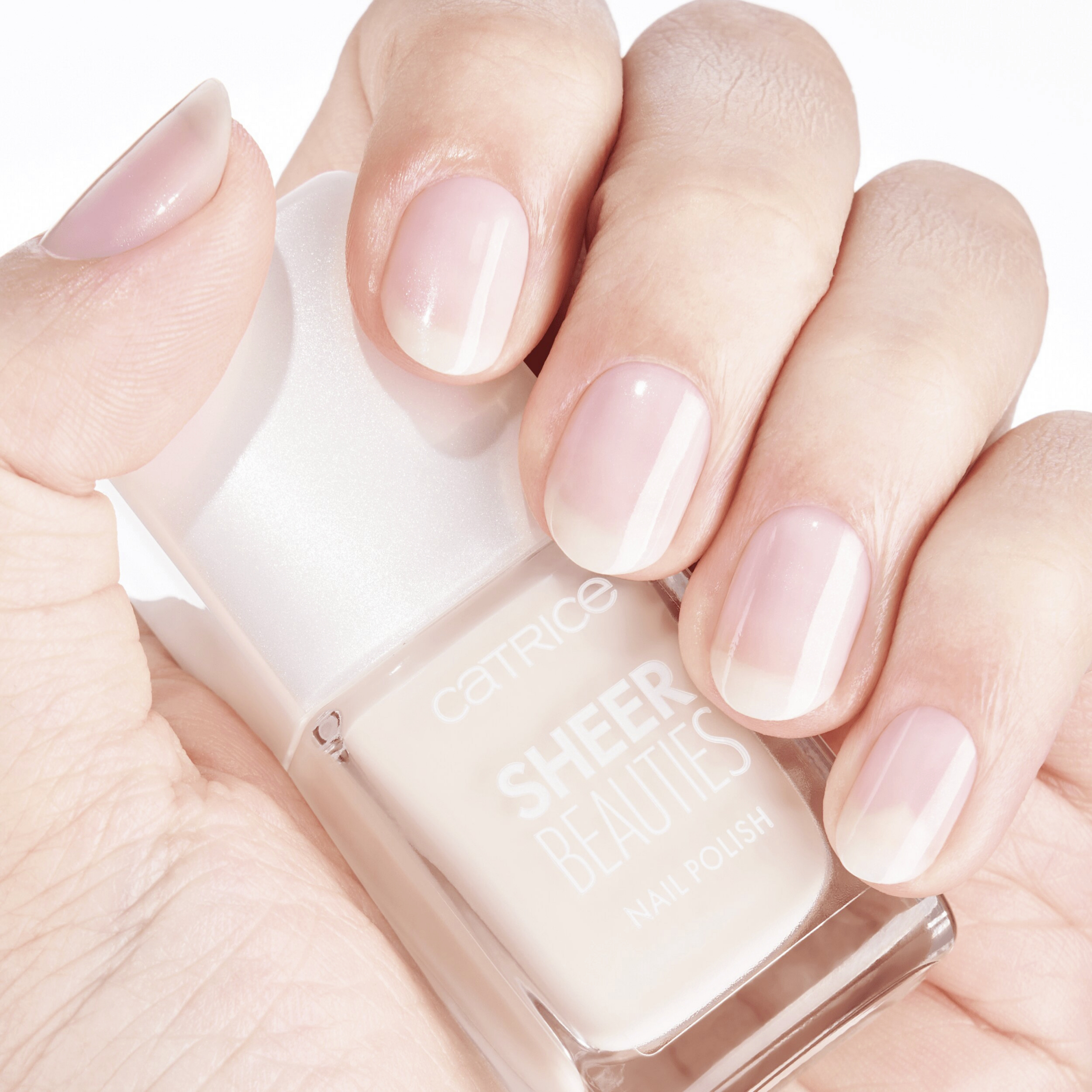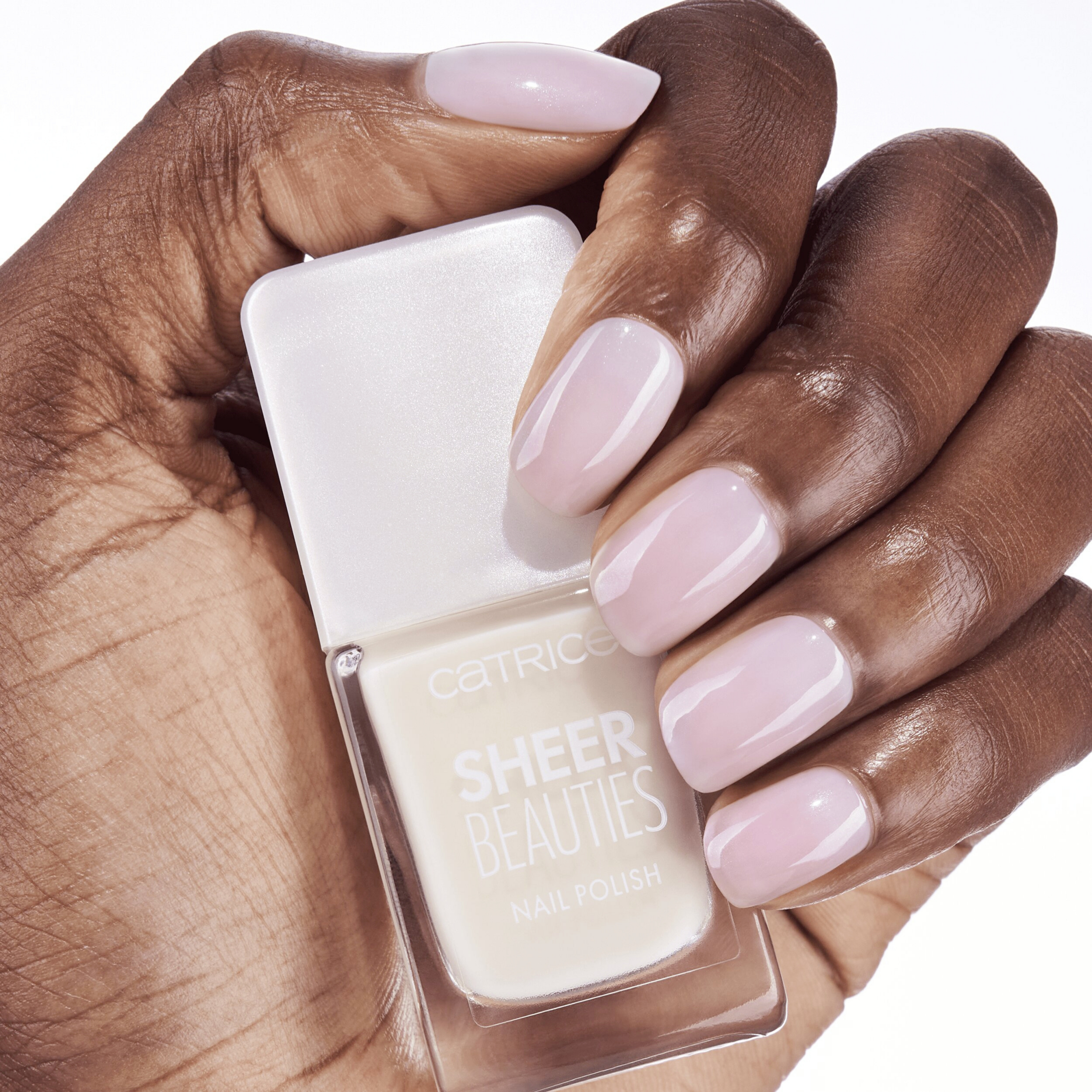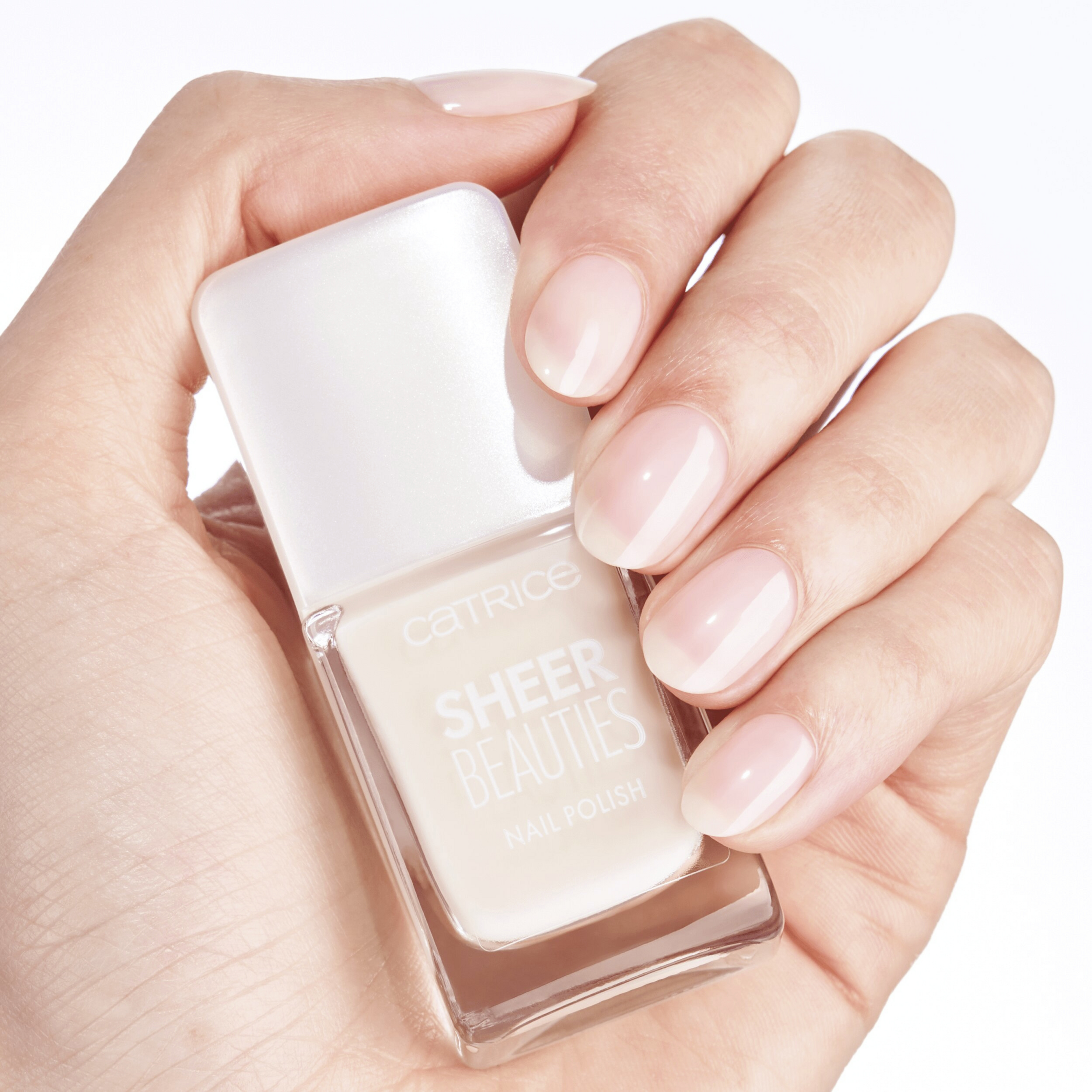 Den perfektionerende CATRICE Sheer Beauties neglelak i sarte nude nuancer fungerer som et filter for Negle. Negle lysnes visuelt med en blÄlig shimmer og Finish er gennemsigtig, sÄ farven pÄ den naturlige negl stadig skinner igennem.