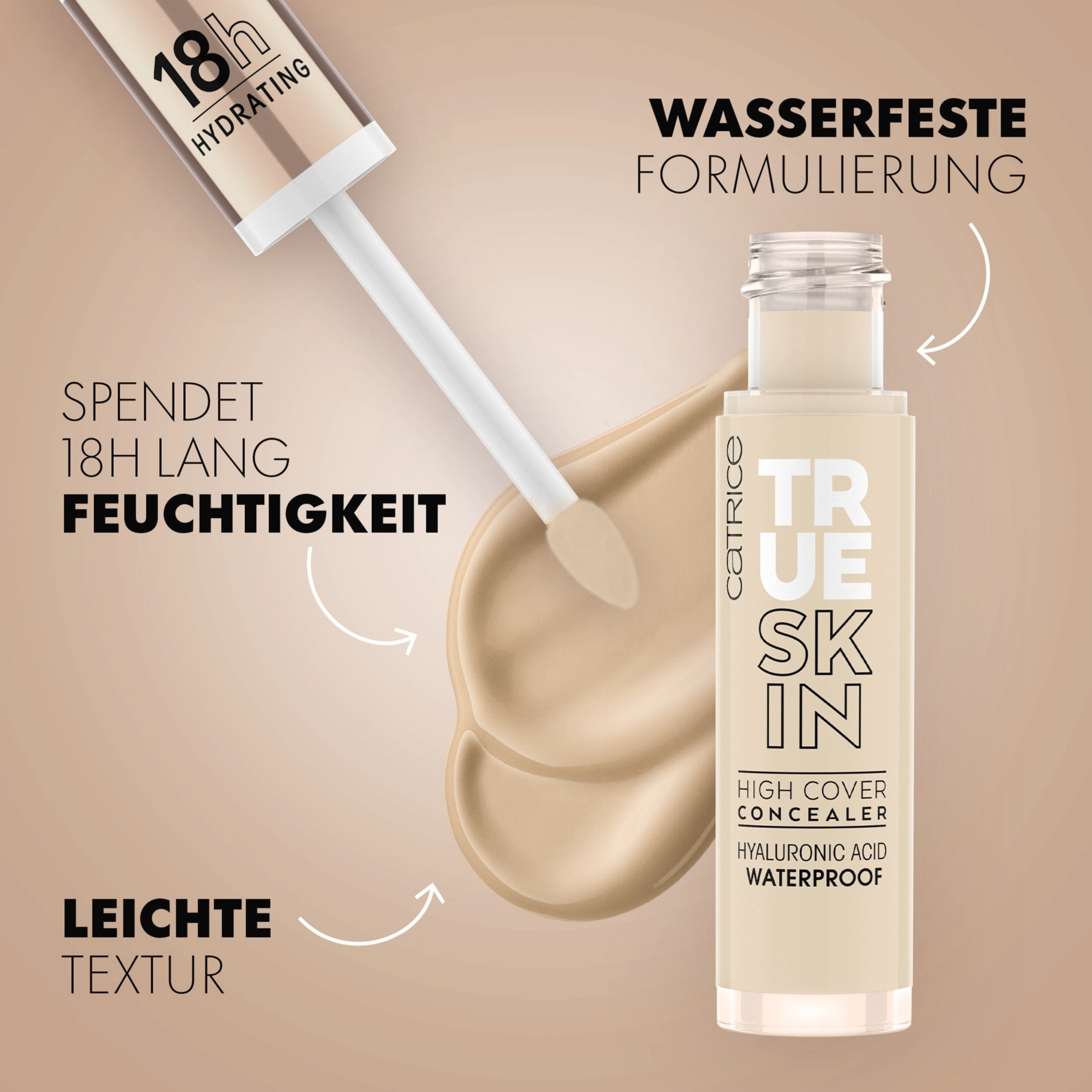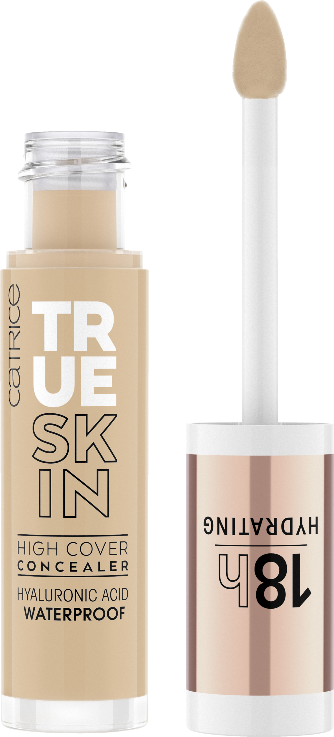 True Skin High Cover Concealer med Hyaluronsyre giver fugt i 18 timer og kombinerer fremragende dækning og let tekstur med optimal Pleje: Den vandfast formel smelter ind i huden uden at sætte sig i fine linjer og giver stadig fremragende dækning.