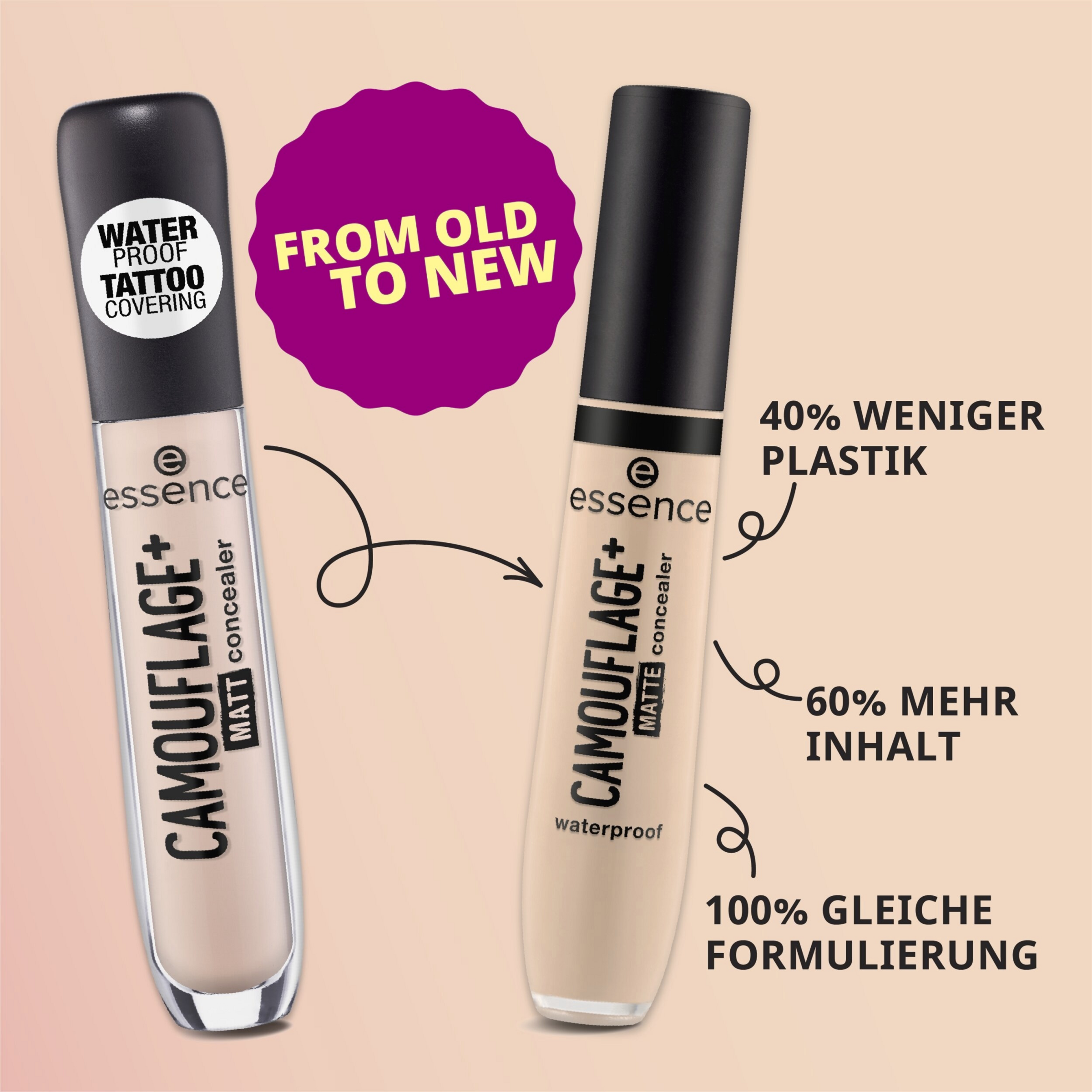 Sig farvel til synlige ujævnheder med essence CAMOUFLAGE+ MATTE concealer 180 i en medium, neutral nuance!