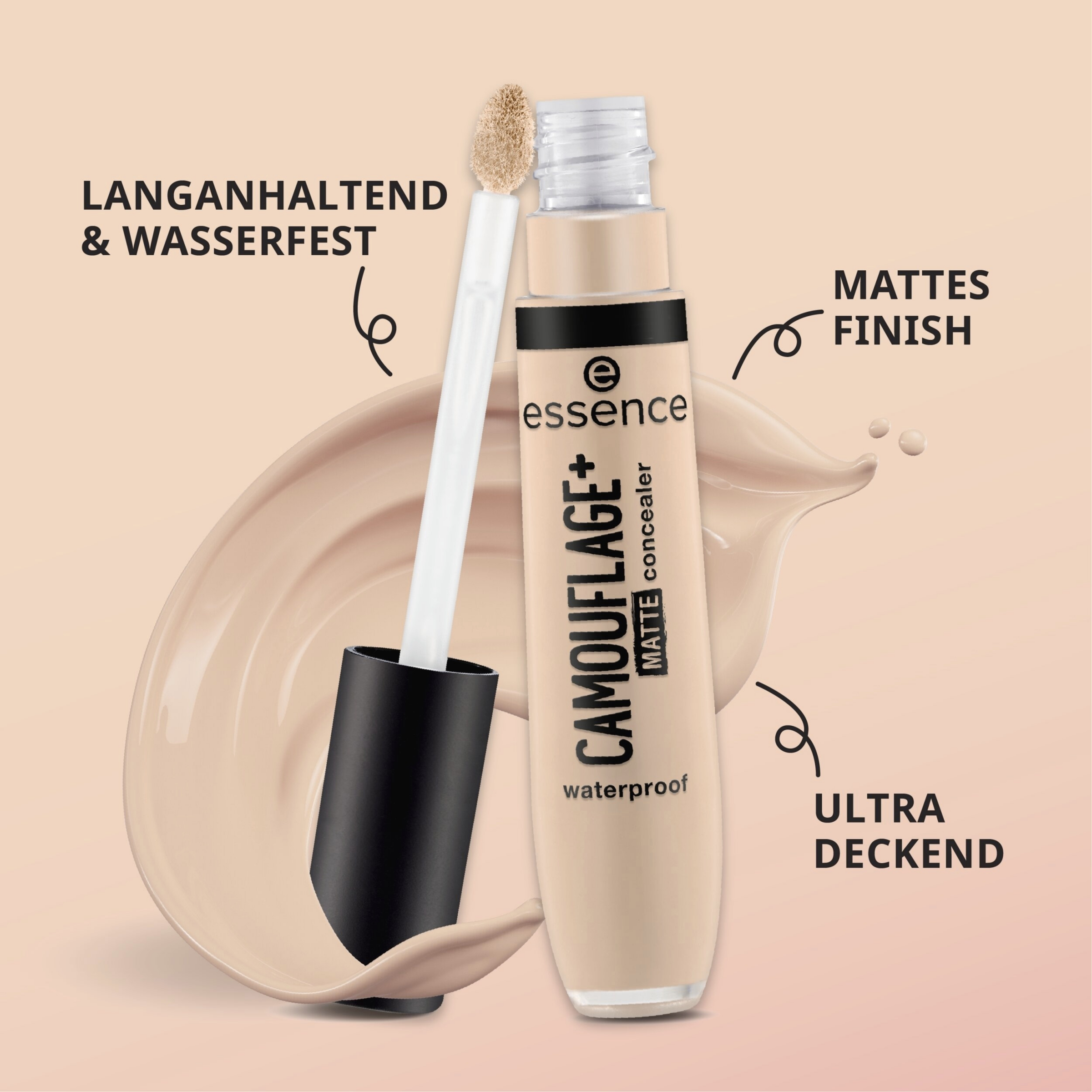 Sig farvel til synlige ujævnheder med essence CAMOUFLAGE+ MATTE concealer 20 i en meget lys farve med en rosa undertone!
