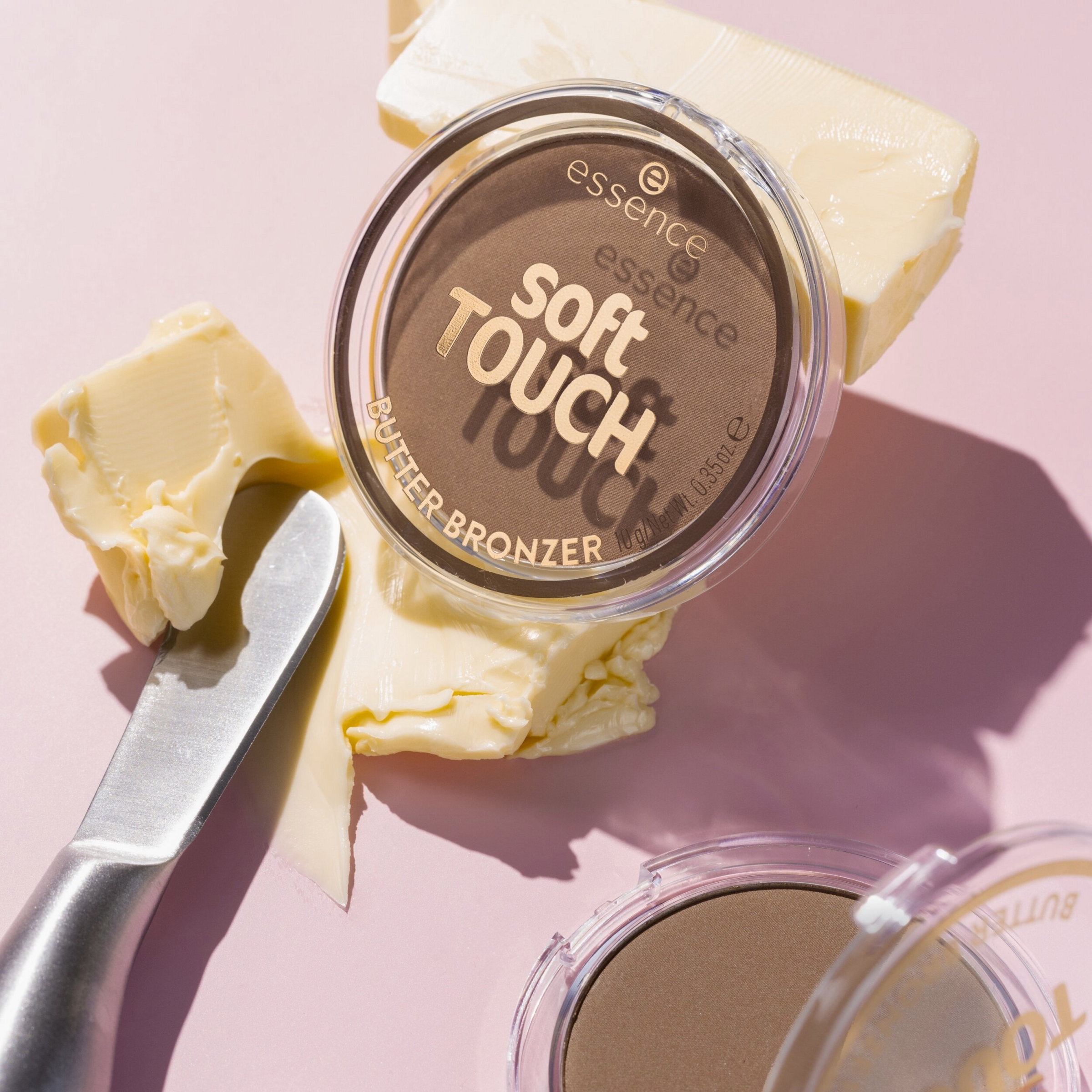 Solkysset på få sekunder! Essence soft TOUCH BUTTER BRONZER 10 whipped buttercup i en lysebrun farve med en neutral-varm undertone tilfører øjeblikkeligt varme og kontur til dit look - takket være den fløjlsagtige tekstur. Den højpigmenterede pudder blandes ubesværet og efterlader en naturlig mat finish, som kan intensiveres efter ønske. Formlen føles ikke kun smørblød, men har også en frisk duft af kokosnød - for ægte tropisk stemning.