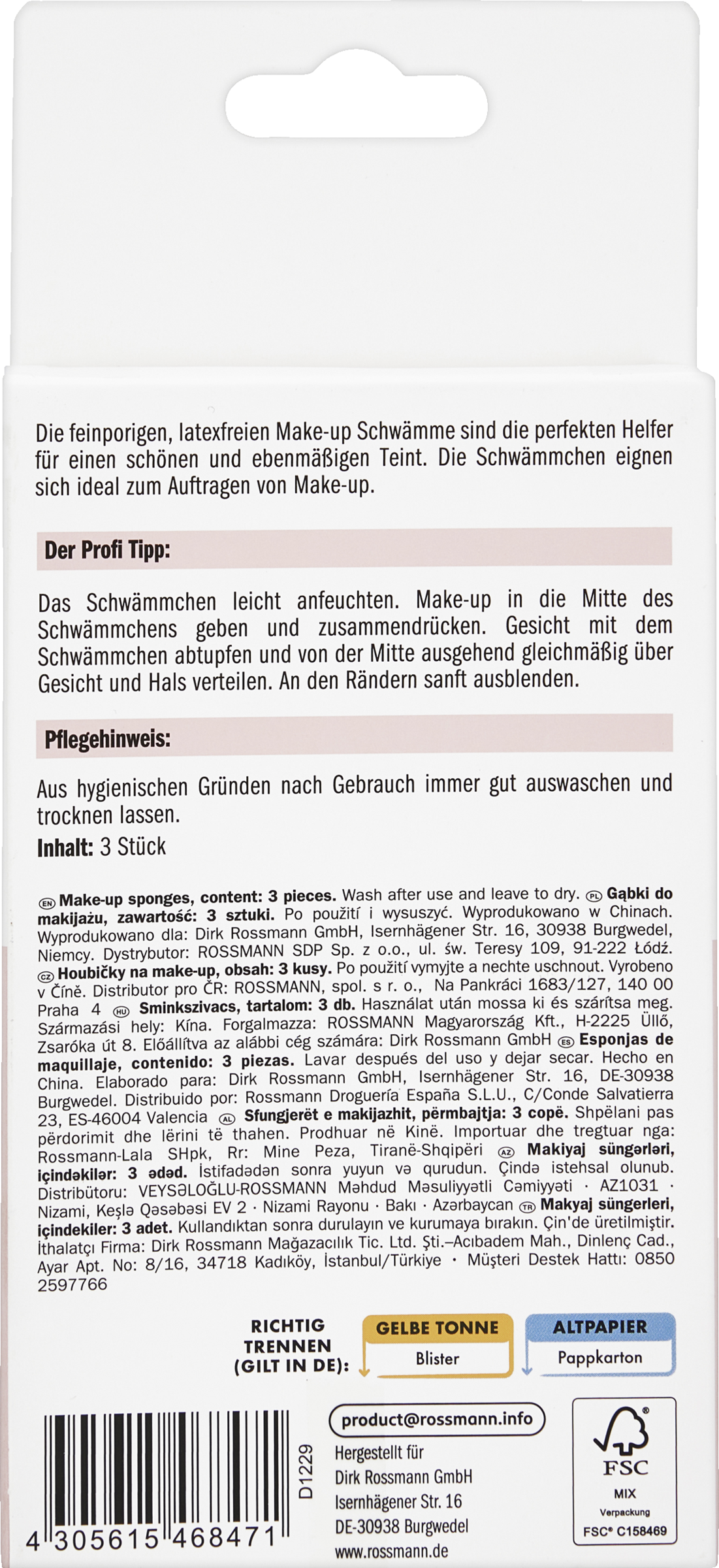 AnvendelseGør svampen let fugtig. Kom makeup i midten af svampen, og klem den sammen. Dup ansigtet med svampen, og fordel makeuppen jævnt ud over ansigtet og halsen. Udton forsigtigt ved kanterne.