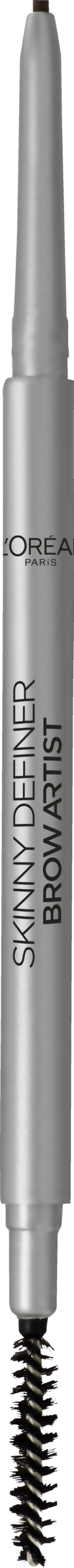 Brow Artist Skinny Definer fra L’Oréal Paris er en ultra-præcis øjenbrynsblyant, der tryller naturlige øjenbryn i løbet af ingen tid. Med den ovale, ekstra fine spids på den ene side kan øjenbrynene fyldes optisk hår efter hår, og øjenbrynene kan defineres. Med den raffinerede spiralbørste på den anden side kan de fine hår derefter børstes i form. Den cremede formel er utrolig nem at påføre og udtone. Takket være den praktiske blyantsform med uddrejelig stift behøver du ikke at spidse den mere. Det betyder, at øjenbrynsblyanten er klar til brug når som helst og muliggør en nem og brugervenlig påføring.