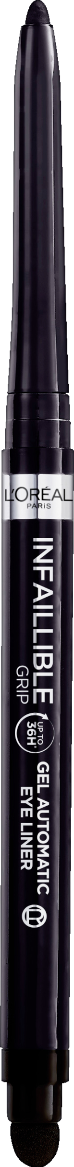 Klar, når du er det: Infaillible Gel Automatic Grip Eyeliner fra L'Oreal Paris er en udtryksfuld eyeliner, der holder hele dagen - hver dag! Formlen er vandfast, smudsafvisende og kan ikke tværes ud. En langtidsholdbar eyeliner til udtryksfulde resultater. I den anden ende af eyelineren er der en blender til at blande farven med resten af låget. Her gemmer sig også en integreret slibemaskine.