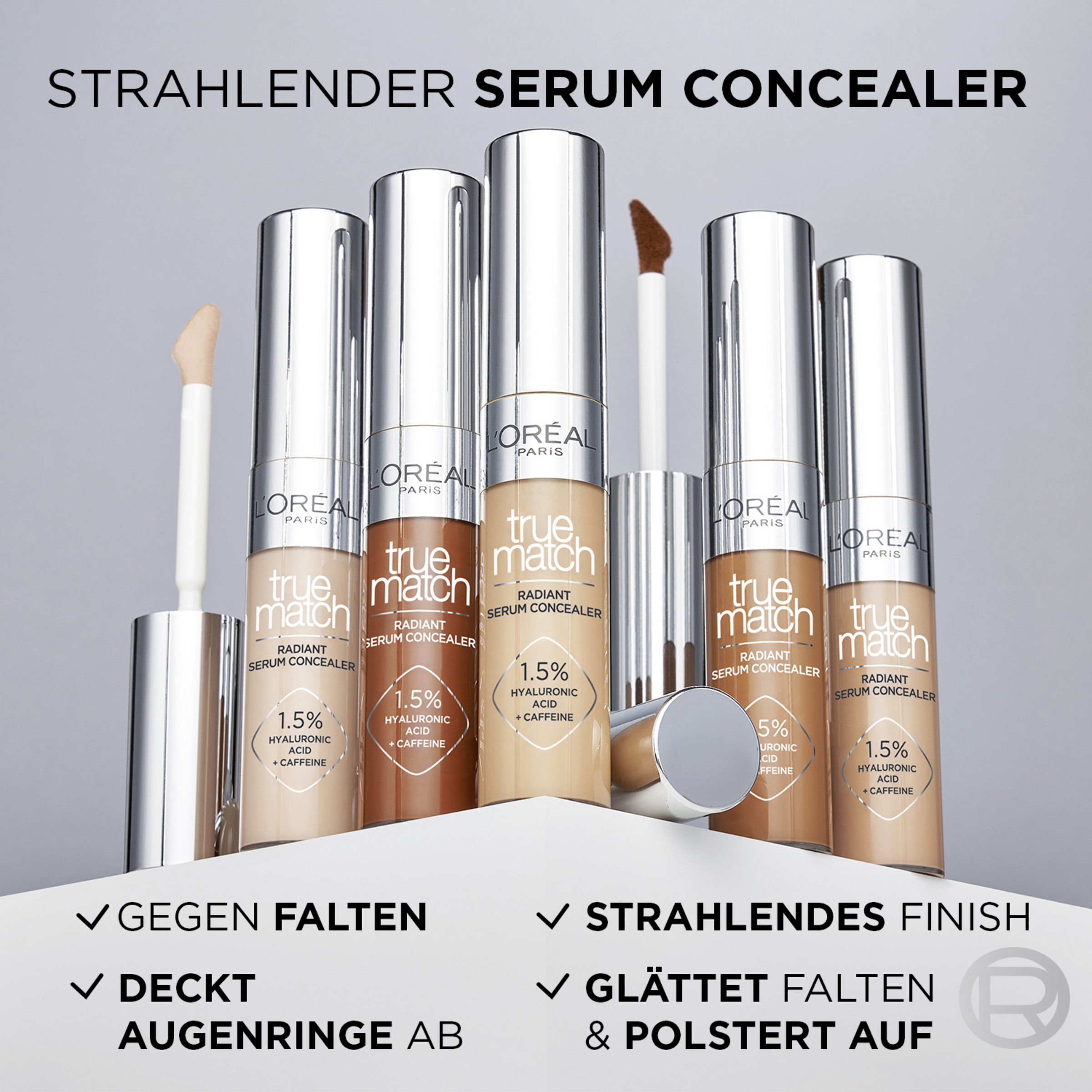L'Oréal Paris True Match Radiant Serum Concealer er et alsidigt must-have til din perfekte ansigtsmakeup. Du kan bruge jernapplikatoren til præcist at korrigere mørke rande og lysne skyggeområder. Påfør concealeren direkte på hudurenheder, under øjnene, omkring næsen og hvor som helst, du har brug for ekstra dækning. Bland ubesværet concealeren med fingerspidserne eller en lille makeupsvamp for en sømløs, strålende finish.